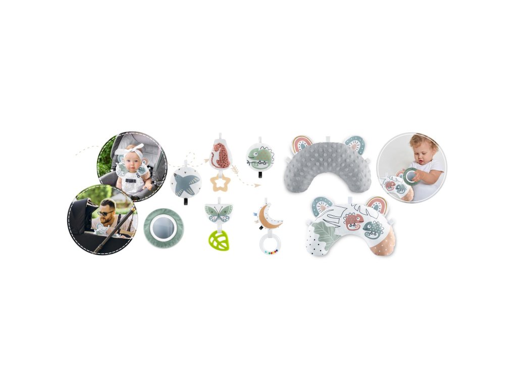 ?zrušené strany? intuitívne úchyty ? háčiky a slučky ? odnímateľné a nastaviteľné hračky a oblúky ?vankúš na ležanie bruško vrátane ?