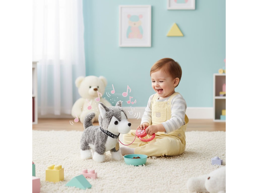 Každé dítě chce mít svého vlastního roztomilého mazlíčka a interaktivní pes na vodítku tuto roli dokonale plní a od prvního okamžiku přitahuje pozornost. Je to dokonalý kamarád na hraní, který učí malé děti, co je to péče, závazek a odpovědnost. Díky realistickým reakcím - chůzi, vrtění ocasem a přátelským zvukům - dítě přirozeně přebírá roli pečovatele, rozvíjení empatie a vytváření návyků každodenní péče. Přiložené doplňky, jako je miska, jídlo a sušenky, inspirují ke kreativní hře a hraní rolí, a zároveň podporuje rozvoj manuálních dovedností.