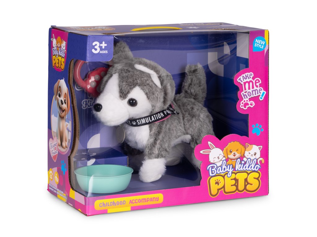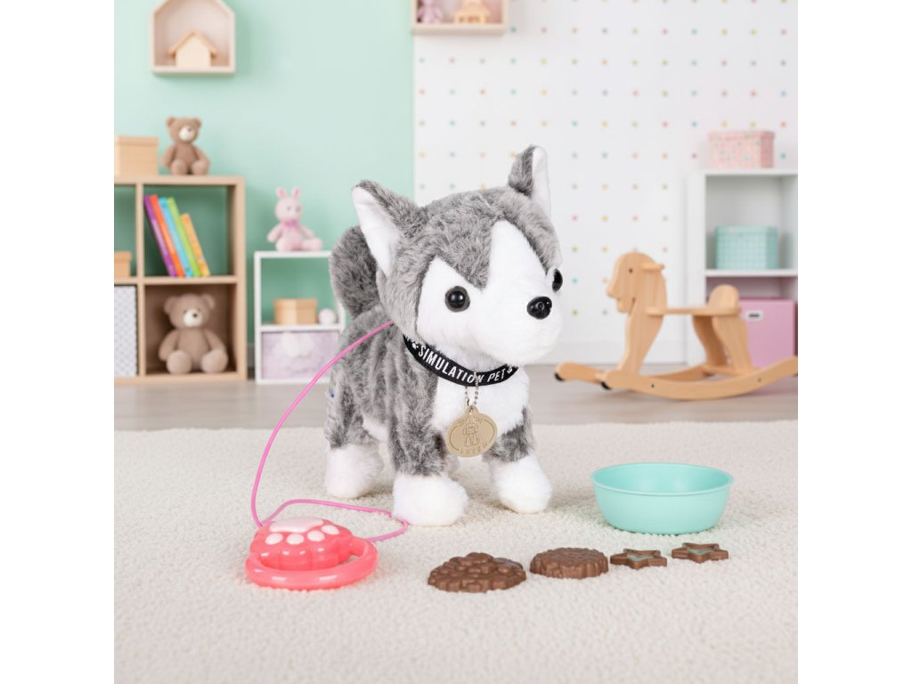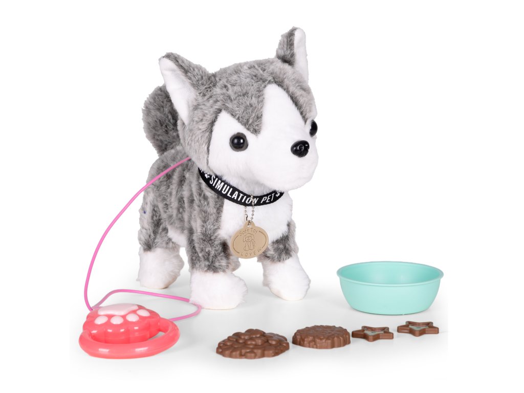 Interaktívny husky na vodítku – chodí, vrtí chvostom
