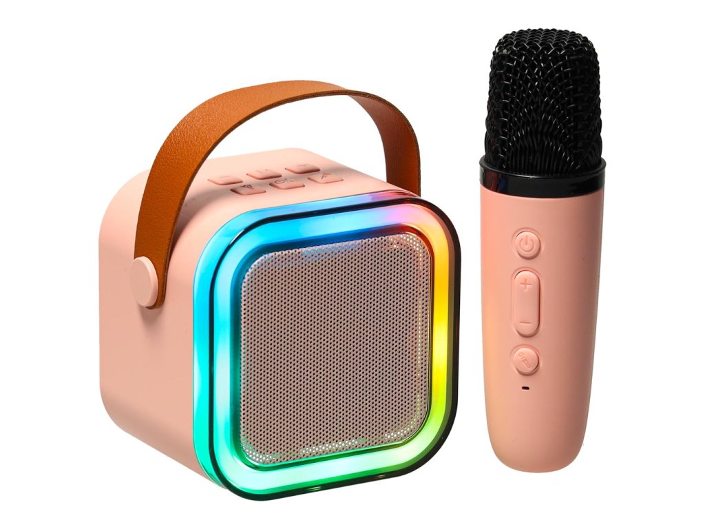 KARAOKE SET MIKROFON + PŘENOSNÝ REPRODUKTOR BLUETOOTH USB LED RŮŽOVÁxml:namespace prefix = "o" ns = "urn:schemas-microsoft-com:office:office" /
