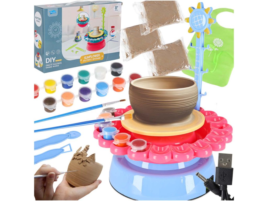 Skvělá sada s otočným hrnčířským kruhem poskytne spoustu zábavy každému dítěti, které si rádo hraje ručně!
