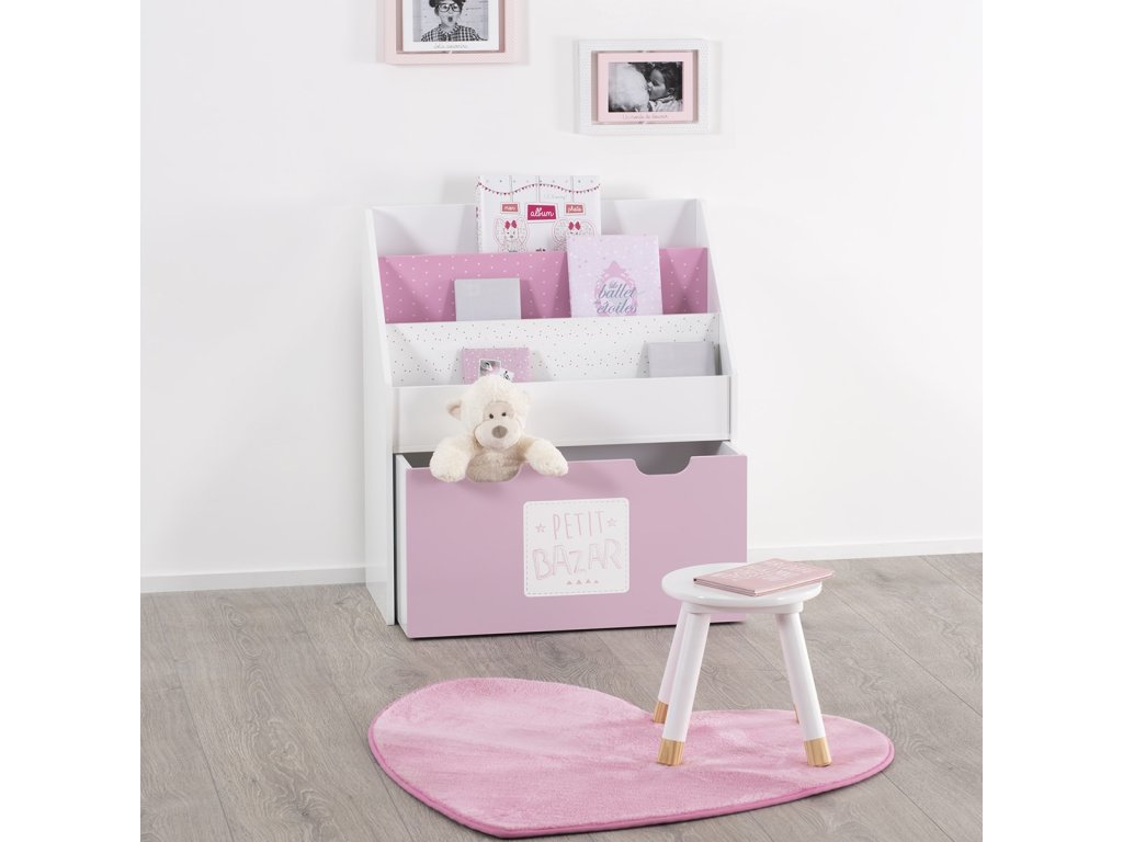 Jednoduchá konstrukce inspirovaná skandinávským stylem se hodí ke všem dekoracím. Skládá se ze 3 přihrádek určených pro knihy a velké zásuvky na kolečkách. Je to ideální úkryt pro hračky, které nechcete mít vedle sebe.