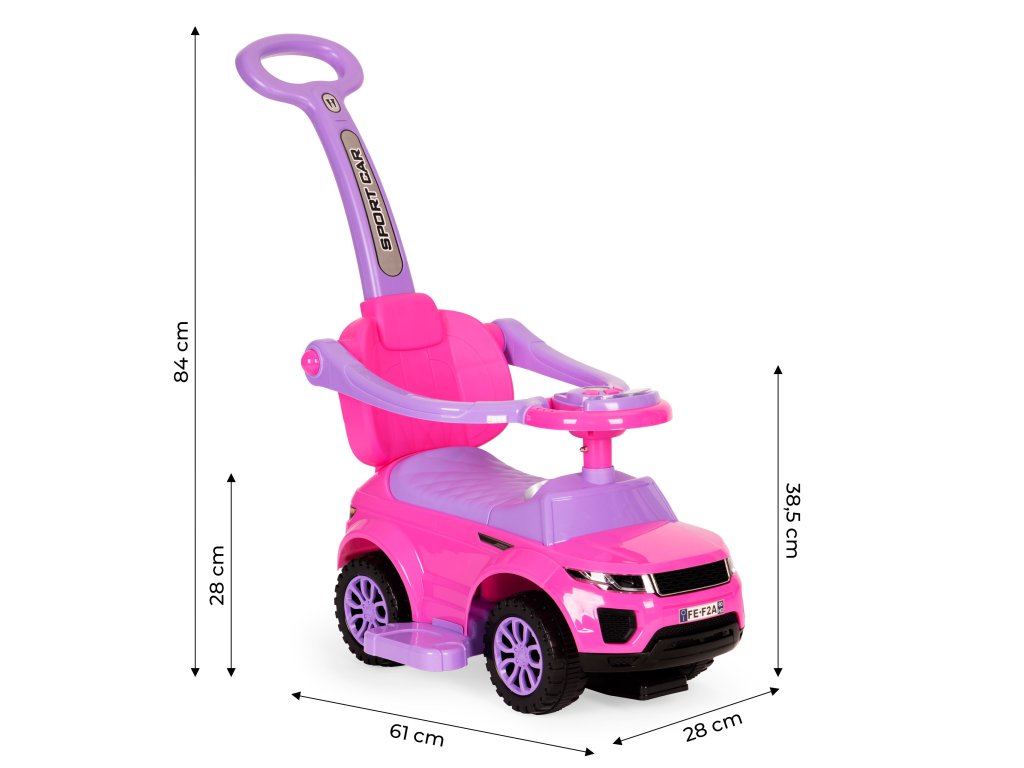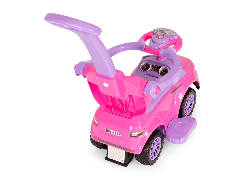Mezi předními a zadními koly jsou speciální patky, které aby se vozidlo nepřevrátilo. Děkujeme jim, dítě bude v bezpečí i během intenzivního hraní, pokud se vozidlo příliš kymácí, nohy jsou na zemi a stabilizují jezdce.