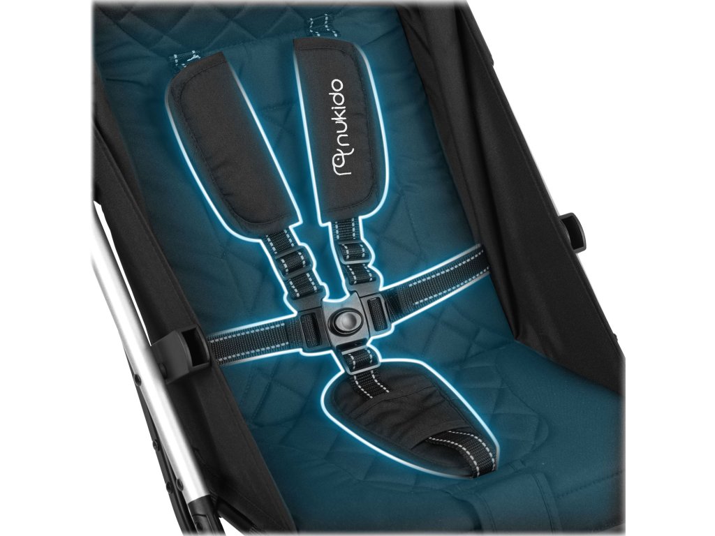 ✔Pětibodové bezpečnostní pásy s polštáři. Tento systém bezpečnostních pásů poskytuje optimální ochranu dítěte v kočárku.