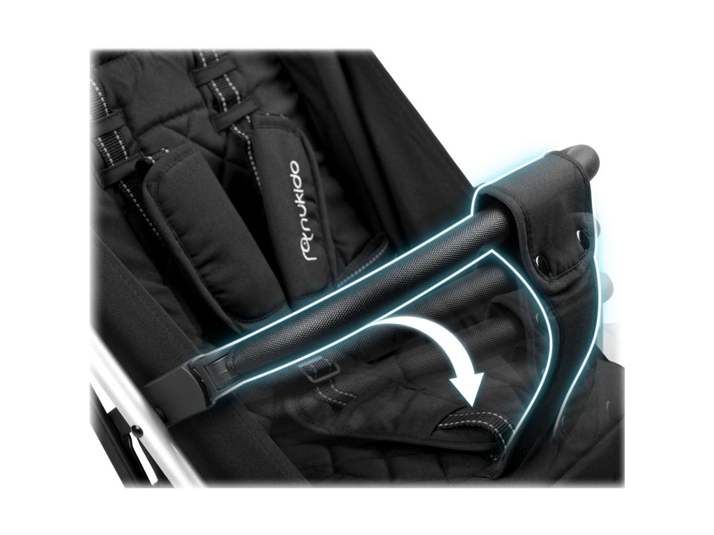 ✔ Nastavitelná bezpečnostní bariéra - Tato zábrana poskytuje dodatečnou ochranu proti náhodnému vypadnutí dítěte z kočárku. Lze ji snadno odpojit nebo přemístit, což usnadňuje umístění dítěte do kočárku a z kočárku.
