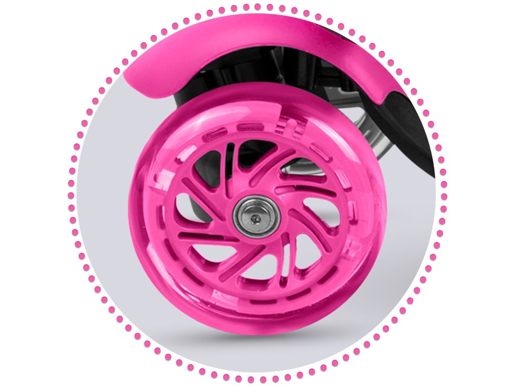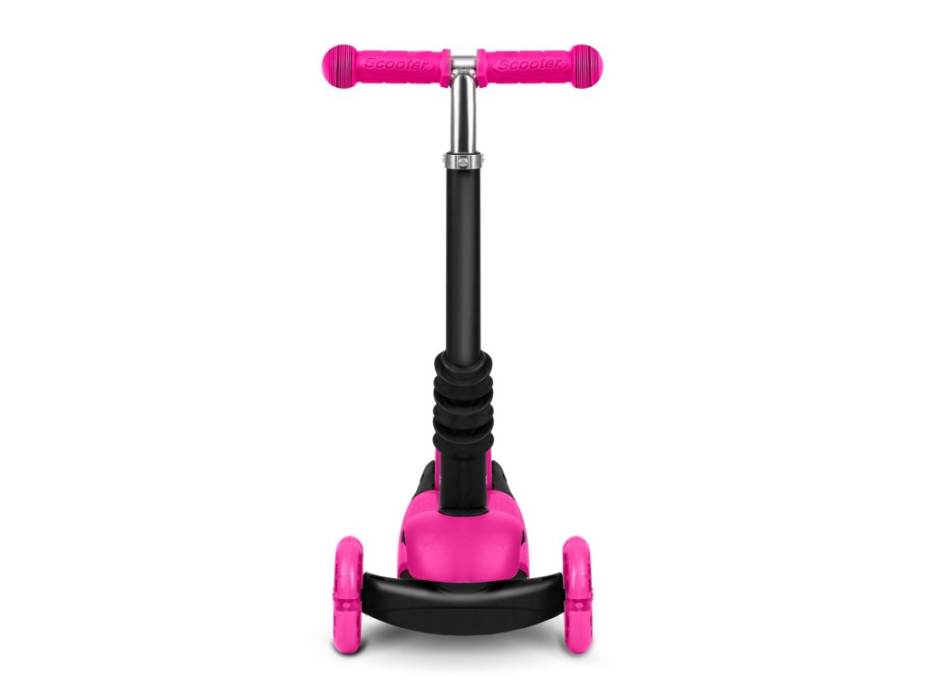 Řízení se provádí výhradněprostřednictvím rovnováhy těla, bez otáčení volantem. Stačí mírně naklonit volant požadovaným směrem - a je to! Vaše dítě si tuto techniku řízení rychle osvojí aprocvičujte svůj smysl pro rovnováhu. Koloběžka zůstává při zatáčení stabilně vzpřímená díky třem kolečkům.