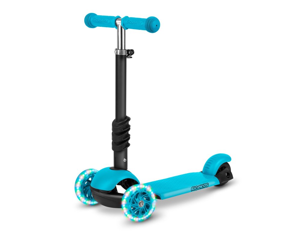 - skvělá zábava! Koloběžka má vestavěné dynamo, díky němuž je schopna kola se za jízdy rozsvítí!