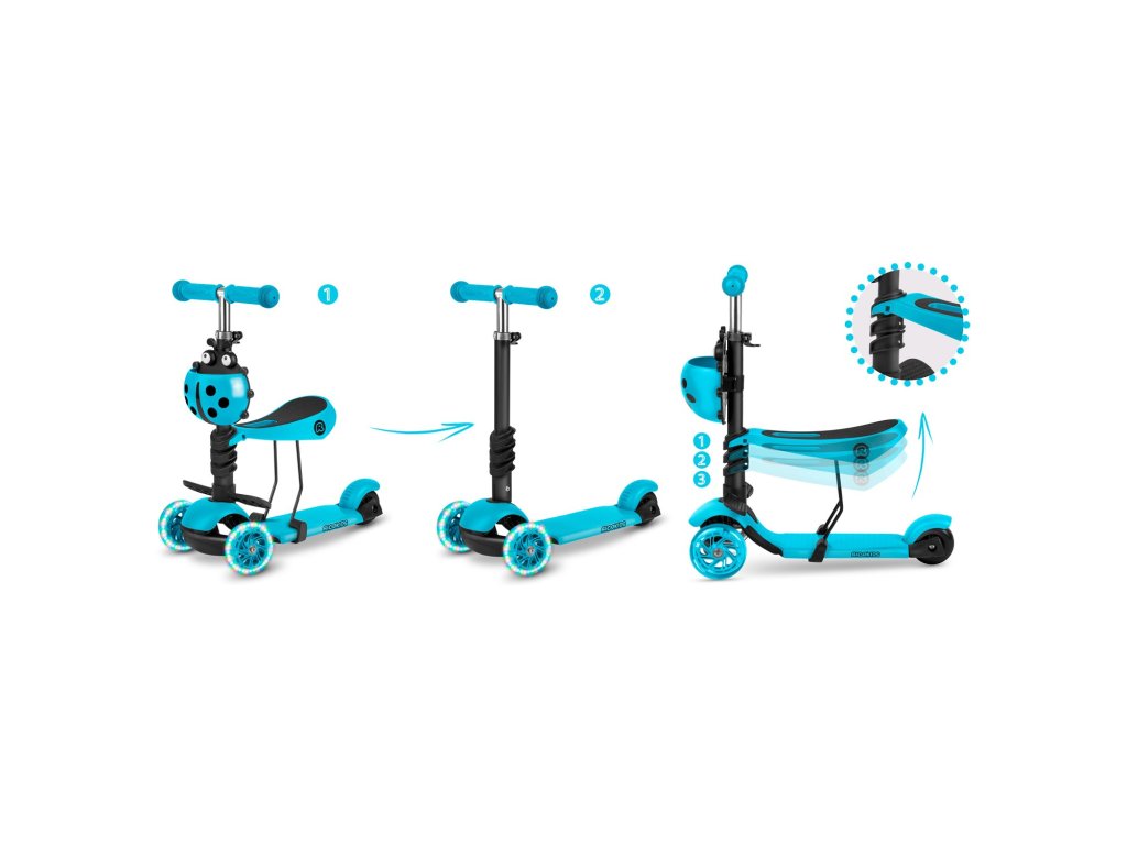 ✔ 3 stupně nastavení výšky sedadla a řídítek,