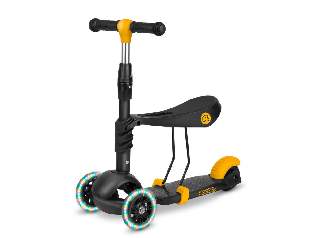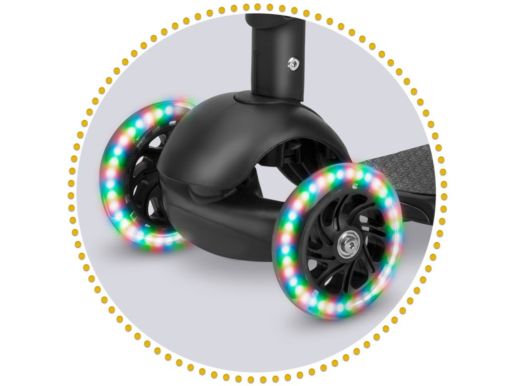 - skvělá zábava! Koloběžka má vestavěné dynamo, díky němuž je schopna kola se za jízdy rozsvítí!
