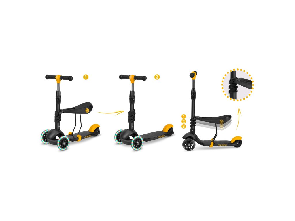 ✔ 3 stupně nastavení výšky sedadla a řídítek,