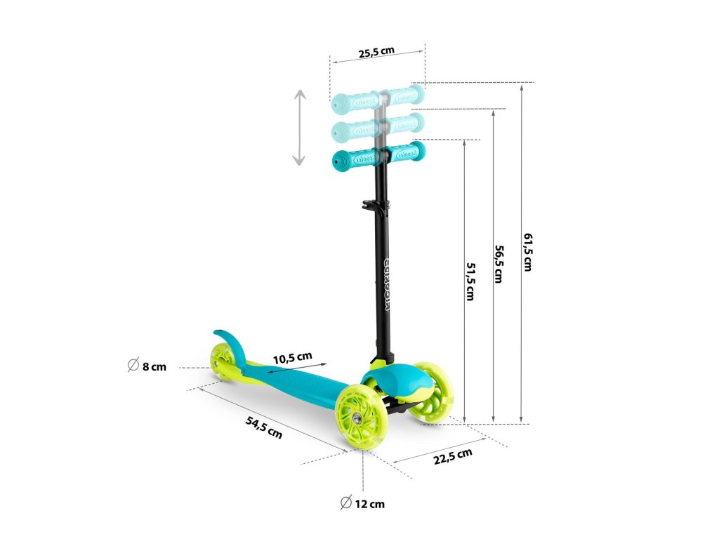 ✔ skúter vydrží roky, vďaka možnosti prispôsobiť si ho svojej výške.