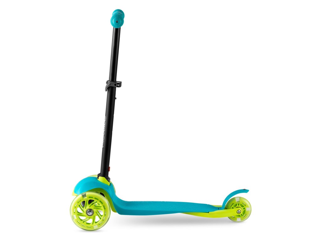 Tento skúter vám umožňuje riadiť ho prostredníctvom vyvažovania tela, bez otáčania volantom. Stačí sa len nakloniť požadovaným smerom - a je to. Vaše dieťa si rýchlo osvojí túto techniku jazdy a zároveň cvičí svoj zmysel pre rovnováhu. Je to tiež zariadenie bezpečnejšie pre menšie deti - kolobežka sa vďaka trom kolieskam sama udrží vo vzpriamenej polohe.