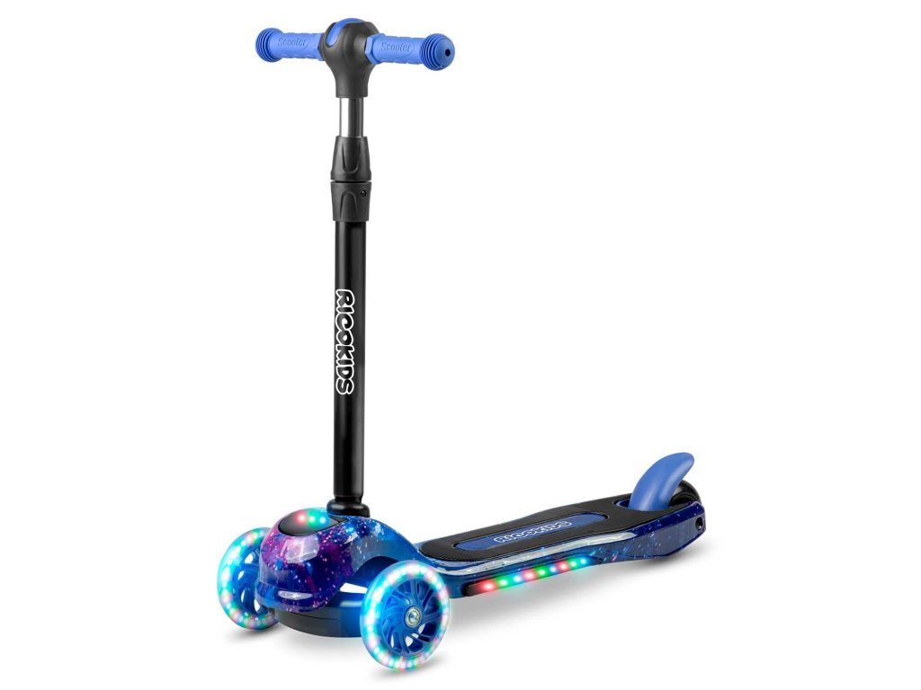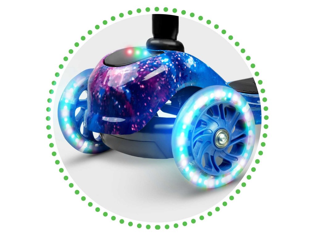 - skvělá zábava! Koloběžka má vestavěné dynamo, díky němuž je schopna kola se za jízdy rozsvítí!