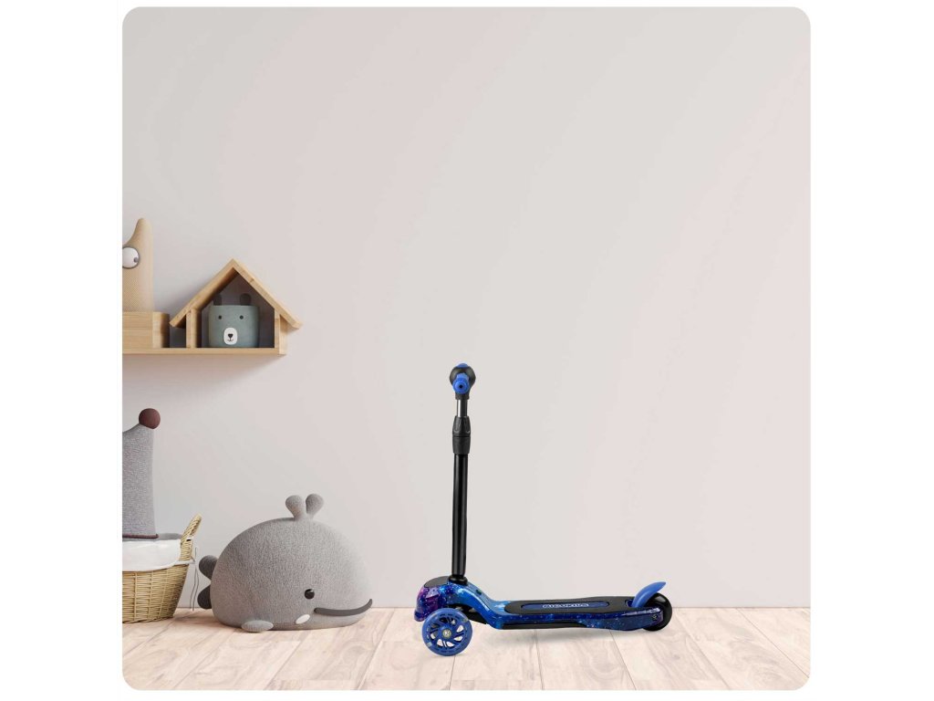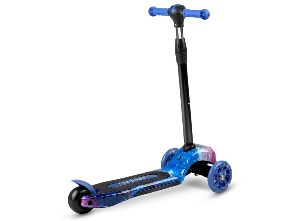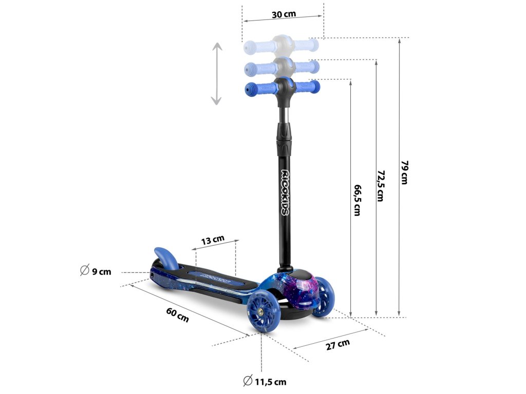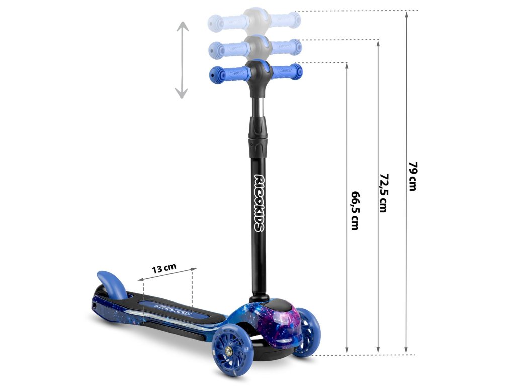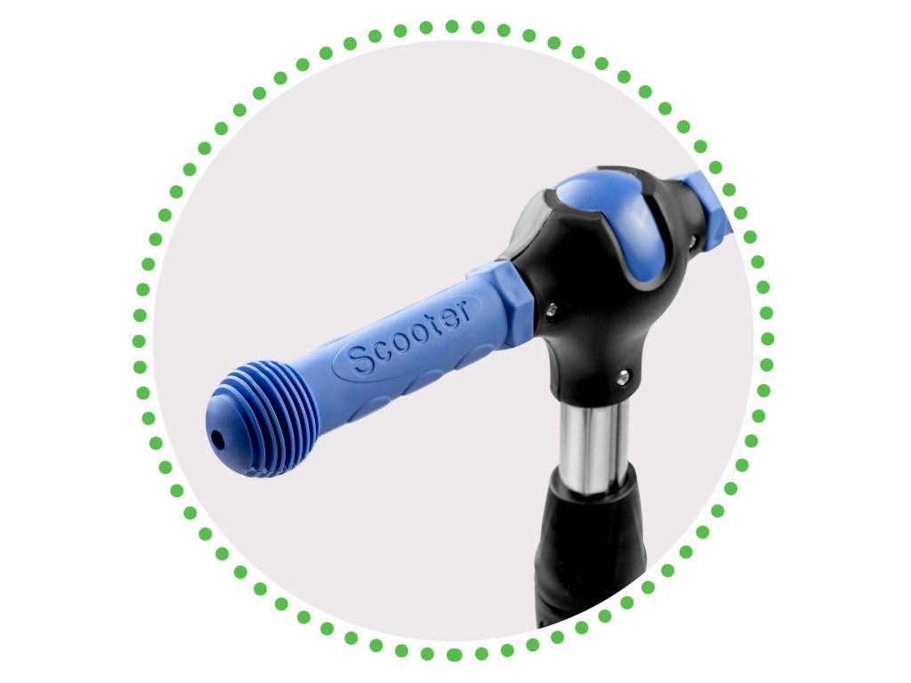 Tento skútr umožňuje říditprostřednictvím rovnováhy těla, bez otáčení volantem. Stačí naklonit volant požadovaným směrem - a je to. Vaše dítě si rychle osvojí tuto techniku řízení a zároveňprocvičujte svůj smysl pro rovnováhu. Je to také zařízeníbezpečnější pro menší děti - koloběžka se díky třem kolečkům udrží ve vzpřímené poloze.