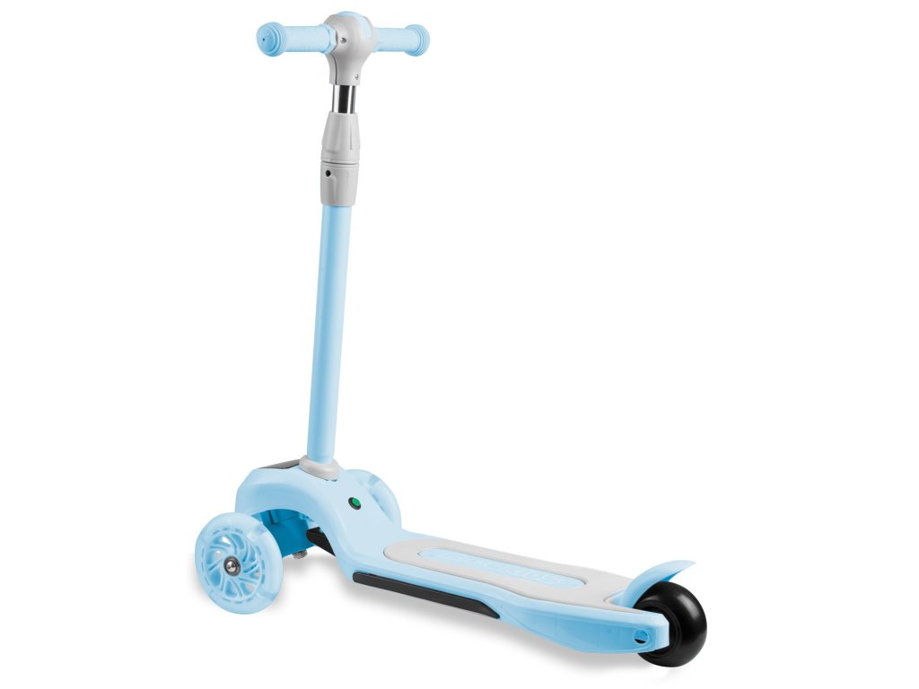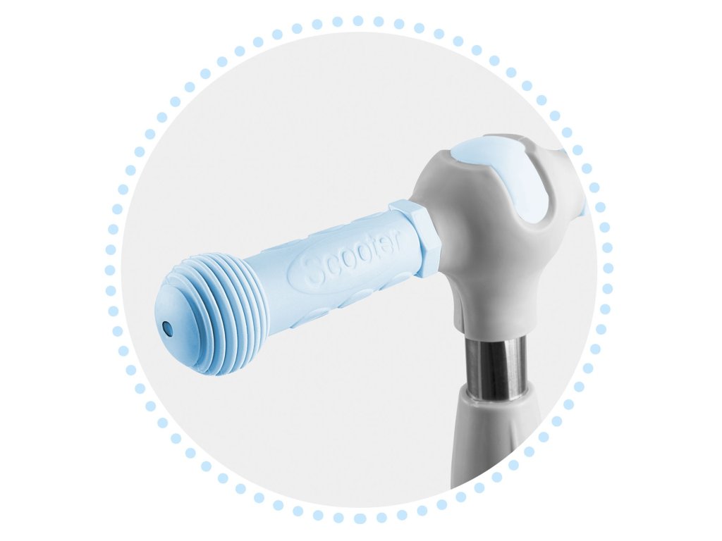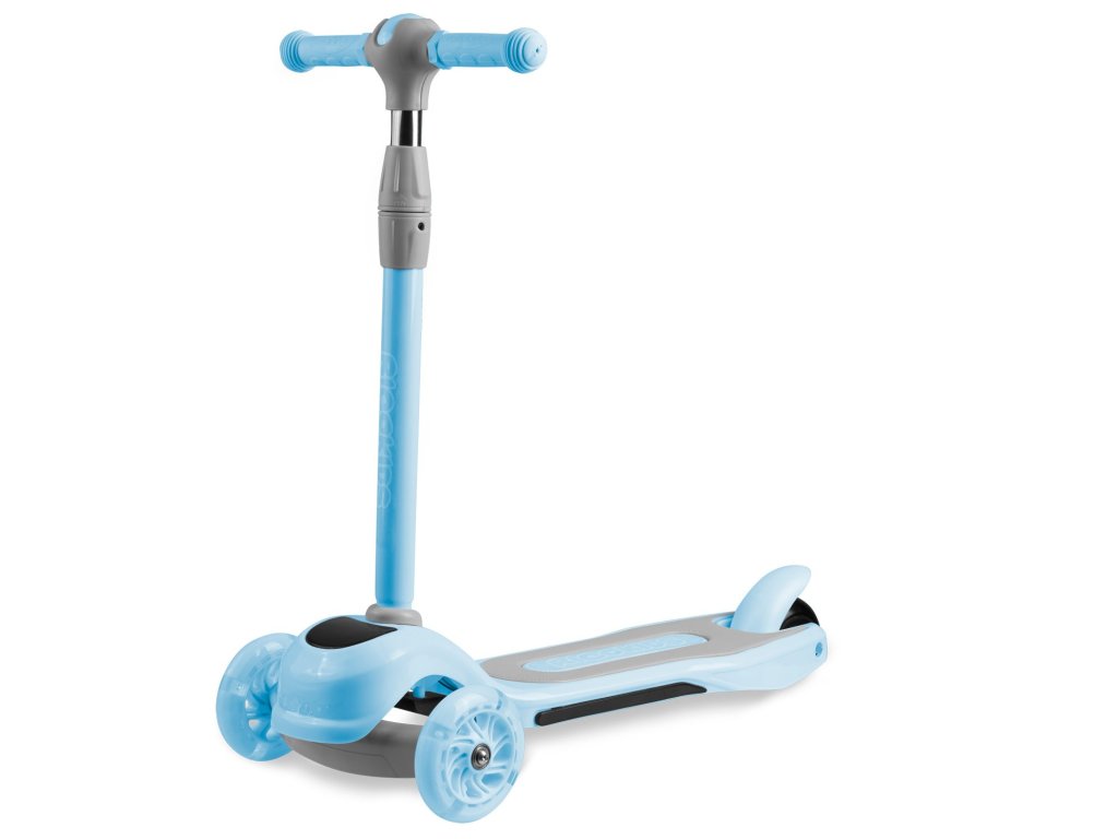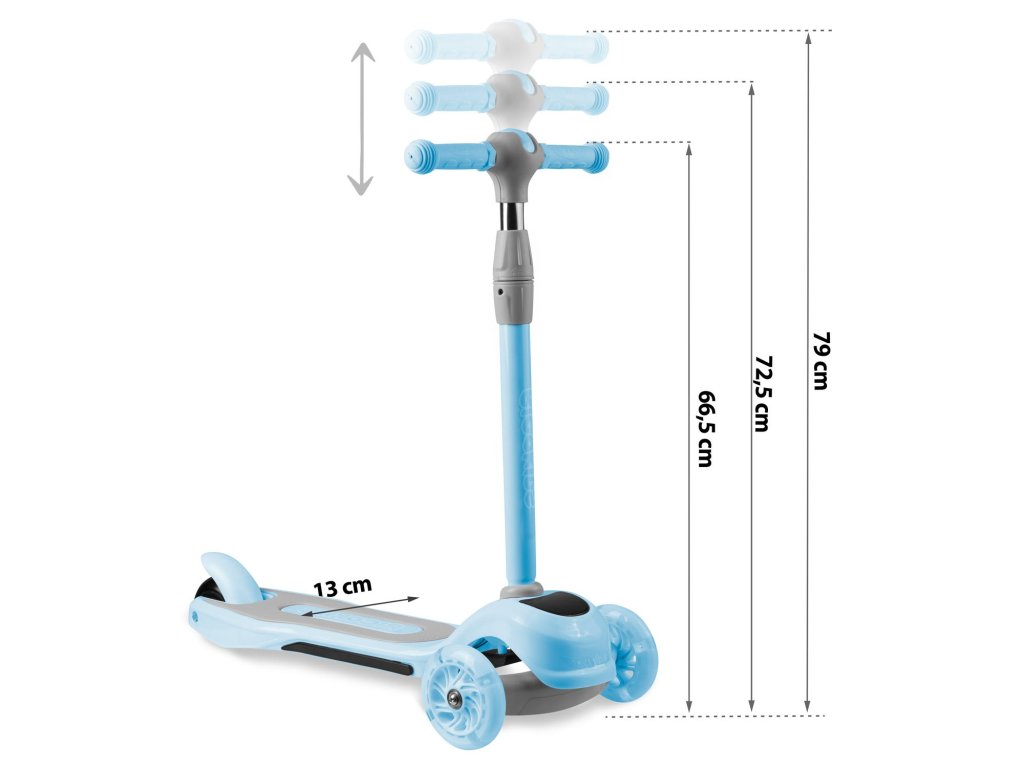 Tento skútr umožňuje říditprostřednictvím rovnováhy těla, bez otáčení volantem. Stačí naklonit volant požadovaným směrem - a je to. Vaše dítě si rychle osvojí tuto techniku řízení a zároveňprocvičujte svůj smysl pro rovnováhu. Je to také zařízeníbezpečnější pro menší děti - koloběžka se díky třem kolečkům udrží ve vzpřímené poloze.