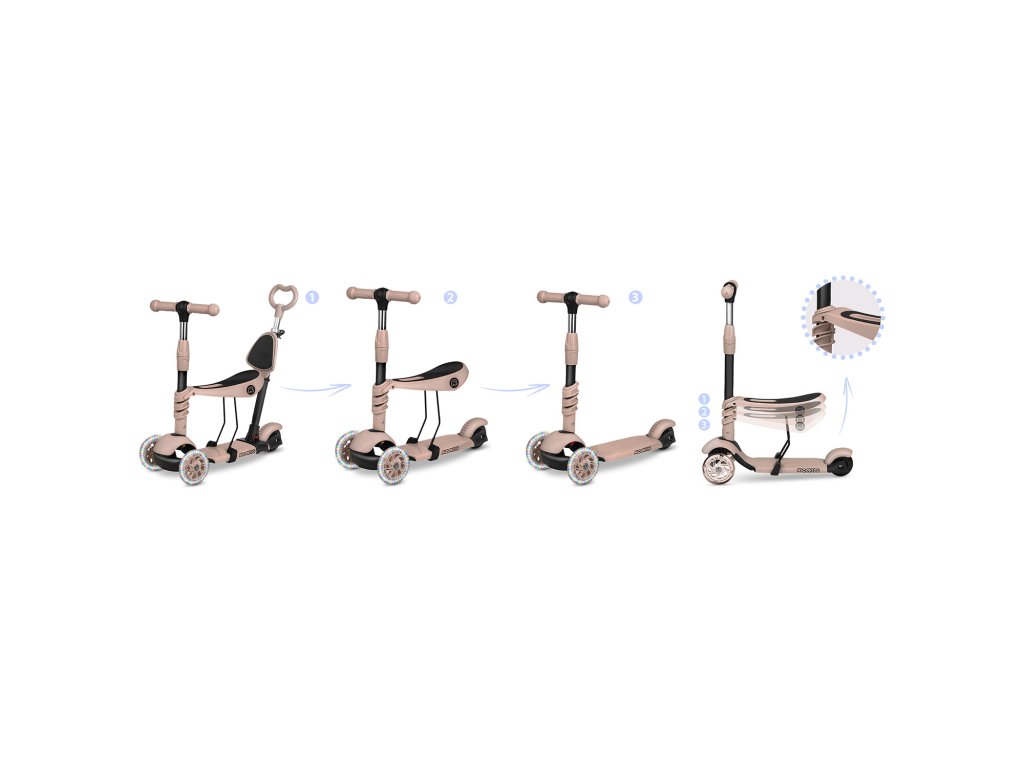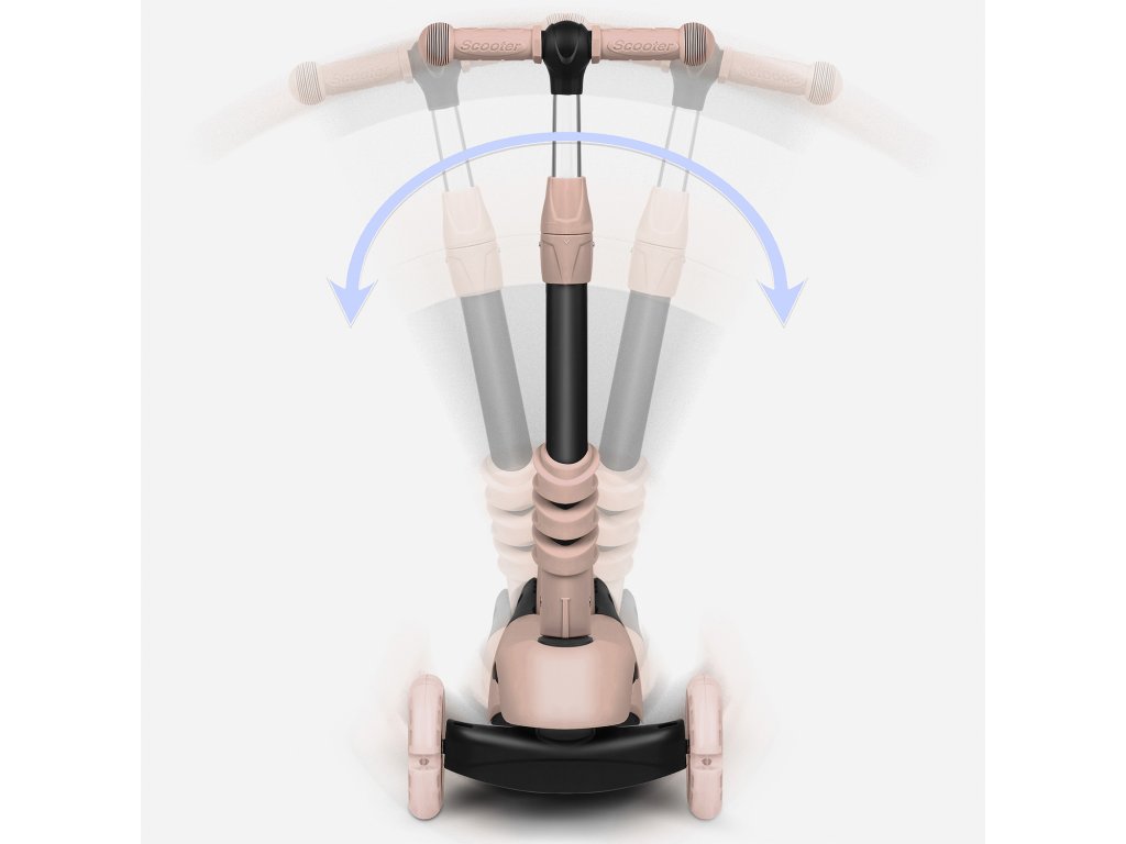 Řízení se provádí výhradněprostřednictvím rovnováhy těla, bez otáčení volantem. Stačí mírně naklonit volant požadovaným směrem a je to! Vaše dítě si rychle osvojí tuto techniku řízení a zároveňprocvičujte svůj smysl pro rovnováhu. Koloběžka zůstává při zatáčení stabilně vzpřímená díky třem kolečkům.