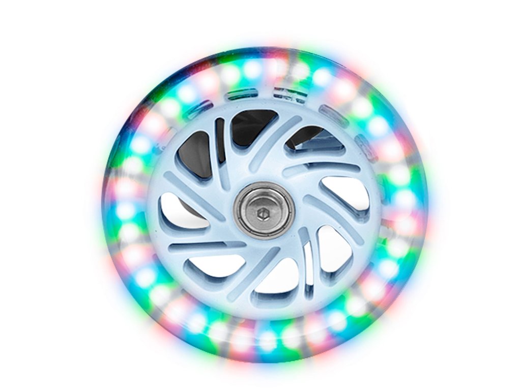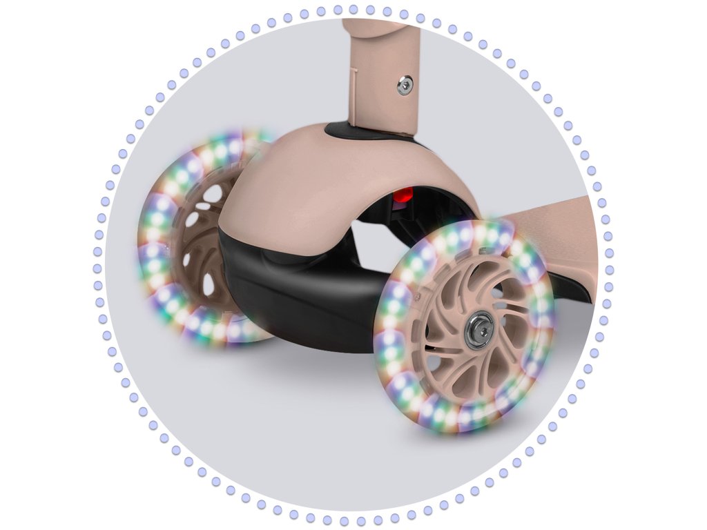 - skvělá zábava! Koloběžka má vestavěné dynamo, díky němuž je schopna kola se za jízdy rozsvítí!