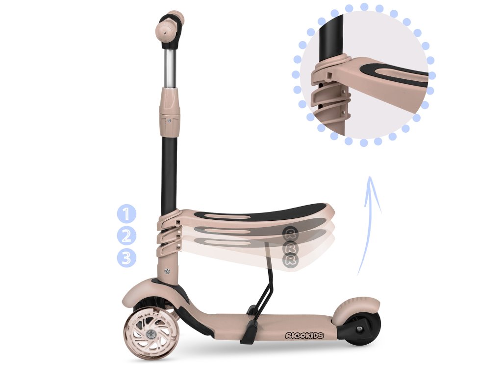 ✔ 3 stupně nastavení výšky sedadla a řídítek,
