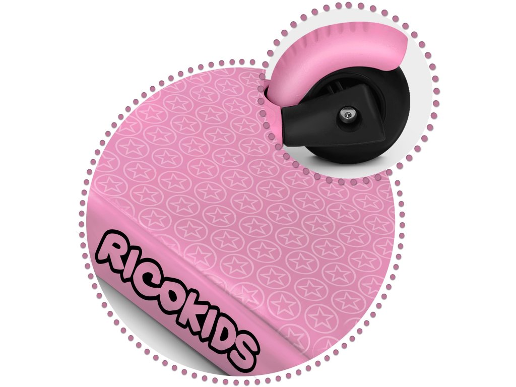 Řízení se provádí výhradněprostřednictvím rovnováhy těla, bez otáčení volantem. Stačí mírně naklonit volant požadovaným směrem - a je to! Vaše dítě si tuto techniku řízení rychle osvojí aprocvičujte svůj smysl pro rovnováhu. Koloběžka zůstává při zatáčení stabilně vzpřímená díky třem kolečkům.