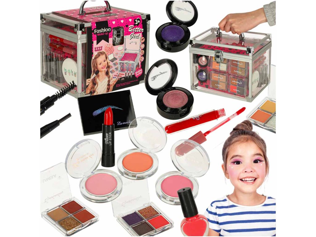 - Bezpečná dekorativní kosmetika pro děti - netoxické, hypoalergenní a snadno omyvatelné vodou, ideální pro jemnou dětskou pokožku dekorativní kosmetika - elegantní a praktická, jako skutečná stylistova krabička - Cosmetic sada pro dívku XXL - bohatý obsah: - Dětská hrací sada na líčení a manikúru - rozvíjí kreativitu, přesnost a estetické cítění - Kosmetická sada pro dívky - dokonalý nápad na dárek pro každou malou princeznu od 3 let