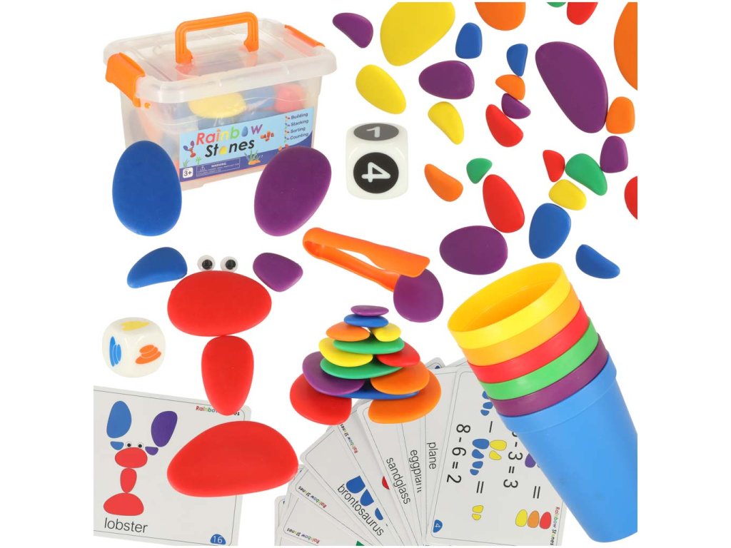 Báječně barevné vzdělávací oblázky si získá srdce každého batolete a podněcovat ho k prozkoumávání světa čísel, objevování nových tvarů a vytváření zajímavých konstrukcí.