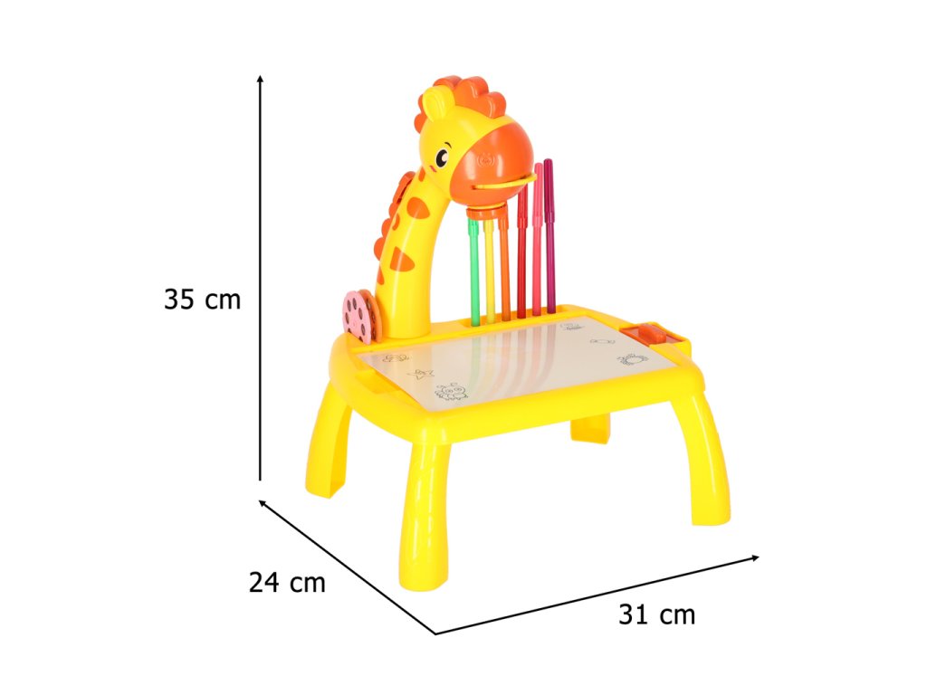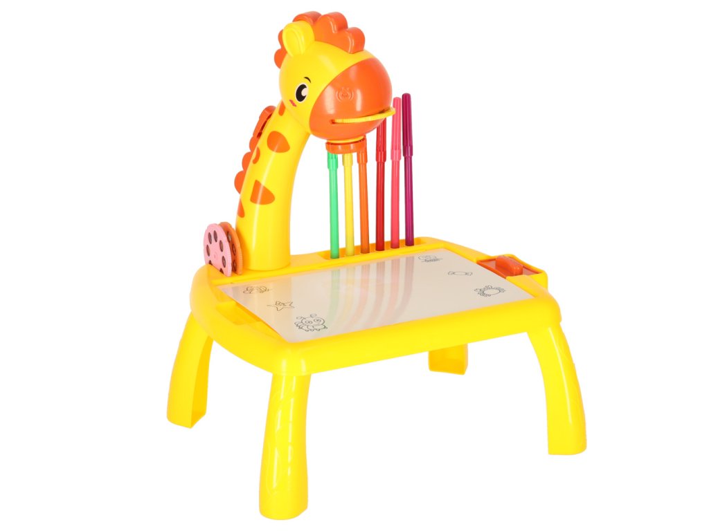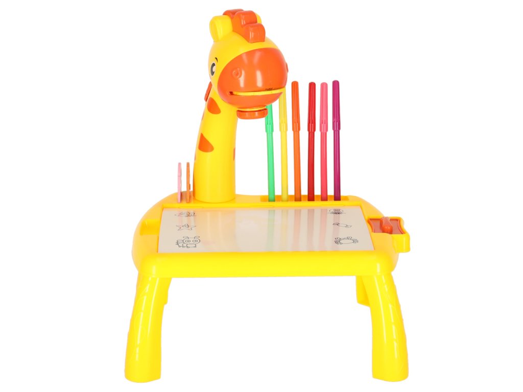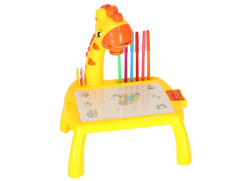 Po stisknutí spínače umístěného na krku žirafy se projektor rozsvítí a zobrazí vybraný obraz z disku. A nyní můžete začít malovat!