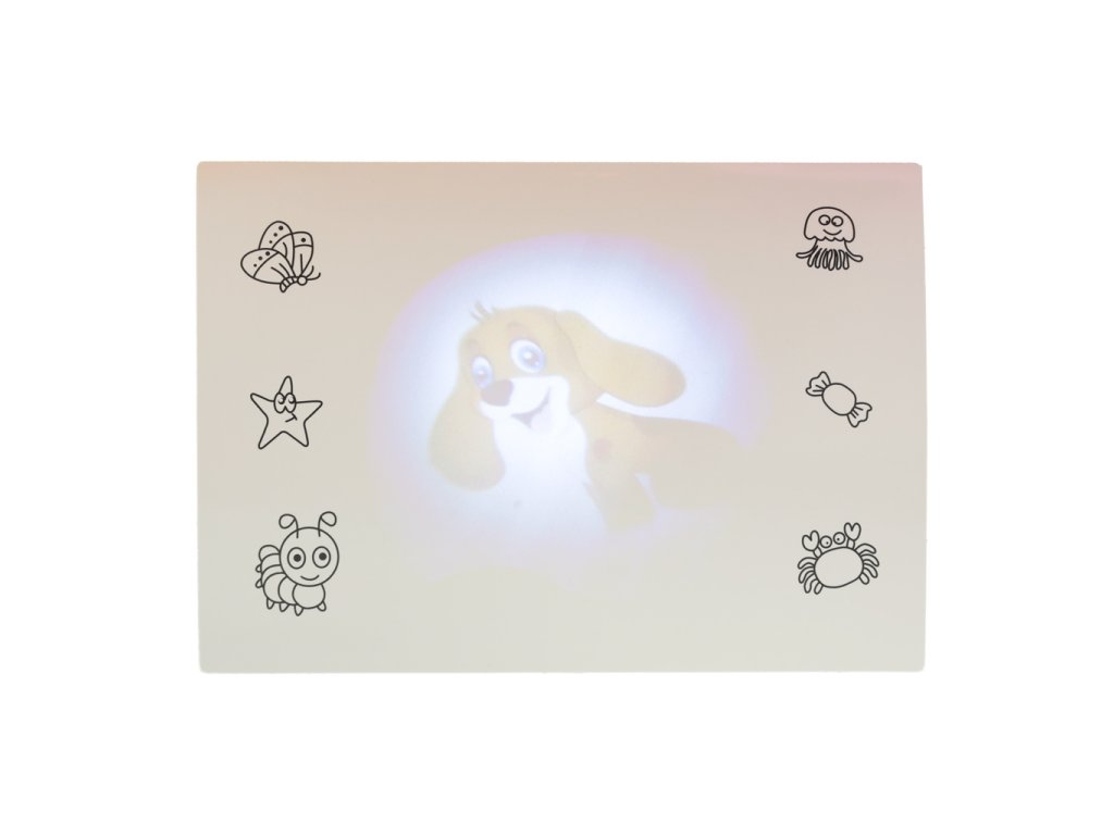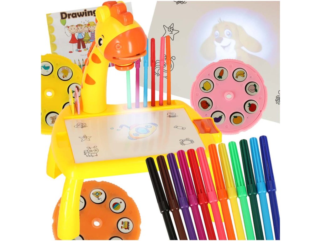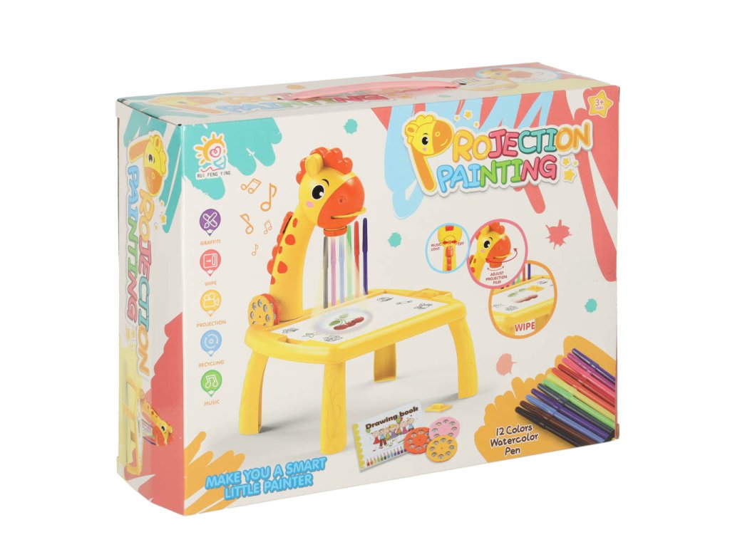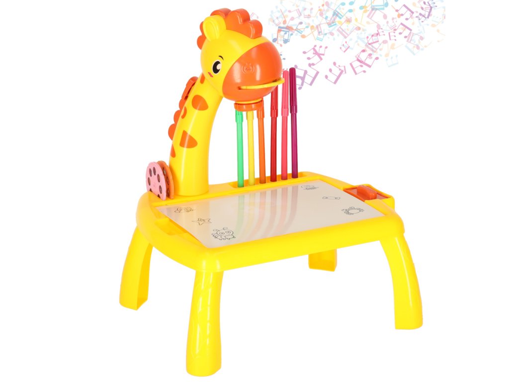 Po stisknutí spínače umístěného na krku žirafy se projektor rozsvítí a zobrazí vybraný obraz z disku. A nyní můžete začít malovat!