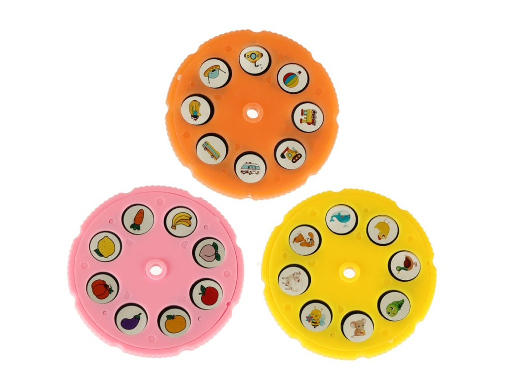 Obrázky lze měnit otáčením disku. Bude zajímavou výzvou pokusit se nakreslit všechny obrázky ze tří disků. Zvládne to vaše ratolest?