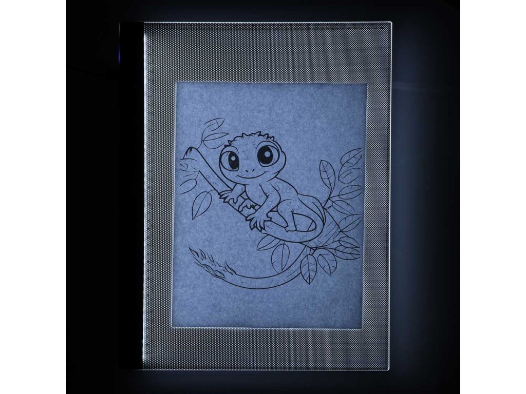 Rovnoměrné a pro oči bezpečné LED podsvícení zaručuje pohodlí a bezpečnost i během dlouhé pracovní doby. Robustní, lehká a štíhlá konstrukce umožňuje vzít si tabuli kamkoli s sebou - do školy, do knihovny, do kavárny nebo dokonce ven! Napájení USB zaručuje svobodu tvořit, ať jste kdekoli.