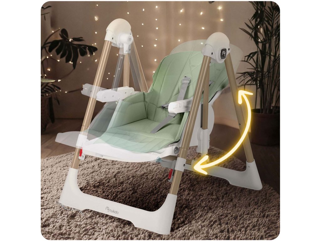 Dítě můžete nakrmit v židličce s podnosem a po jídle podnos vyjmout, snížit sedátko a přeměnit židličku na houpací křeslo, aby vaše dítě mohlo klidně odpočívat.