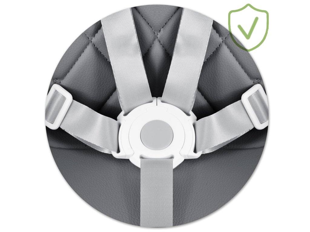 Spolehlivé a osvědčené pětibodové bezpečnostní pásy zajišťují, že dítě nemůže samo opustit židli a riskovat pád.
