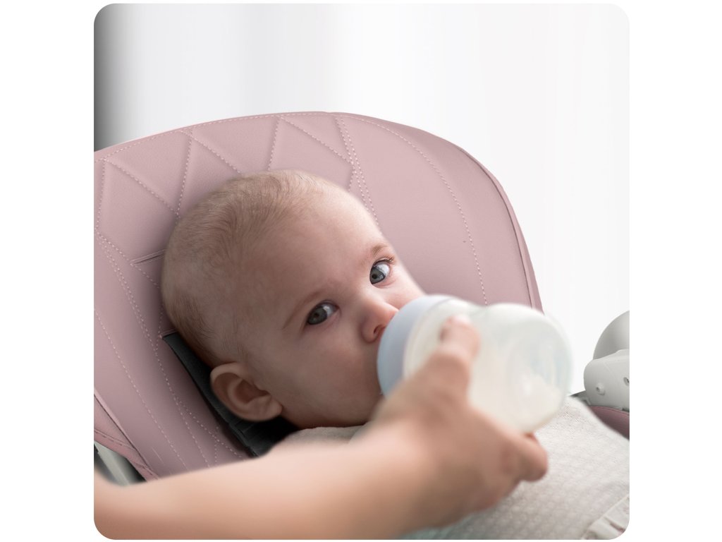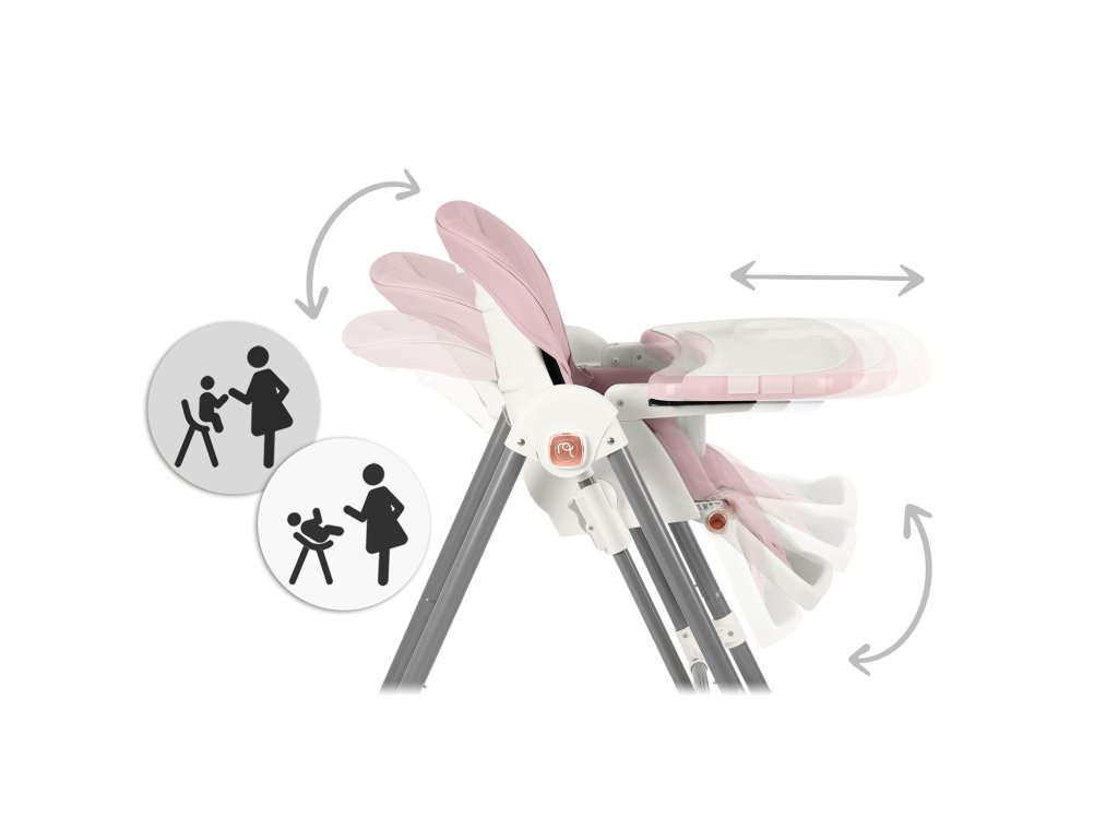Dítě můžete nakrmit v židličce s podnosem a po jídle podnos vyjmout, snížit sedátko a přeměnit židličku na houpací křeslo, aby vaše dítě mohlo klidně odpočívat.