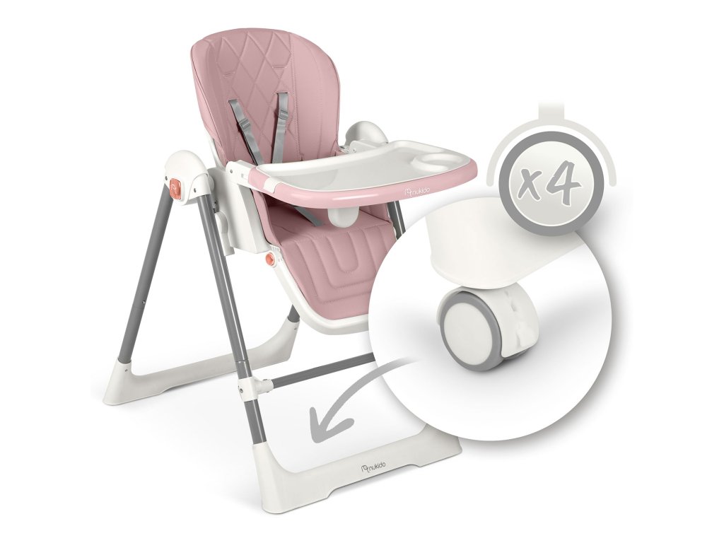 - Protiskluzové nožičky zaručují bezpečnost a kolečka usnadňují přesun židle, kamkoli potřebujete. Po odejmutí se stane dokonale stabilní pro krmení a hraní.