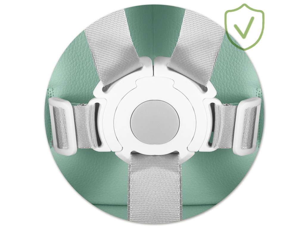 Dodatečné zabezpečení, 5bodové bezpečnostní pásy což neumožní pro samovolné vyloučení dítěte židle. Když už není potřeba, lze ji zcela demontovat.