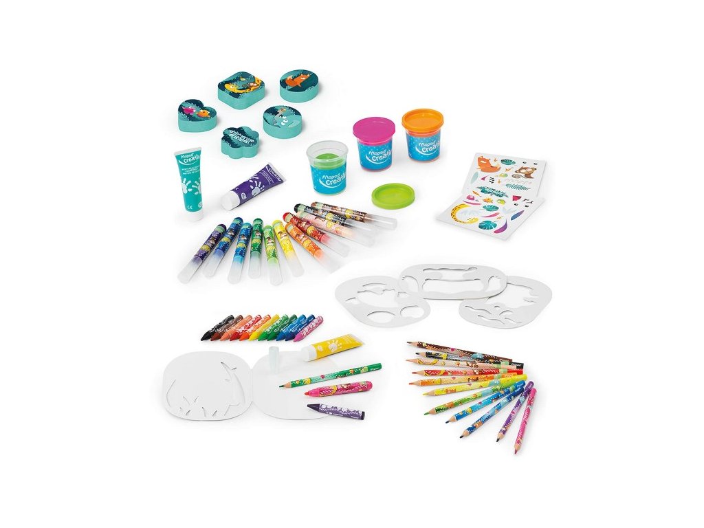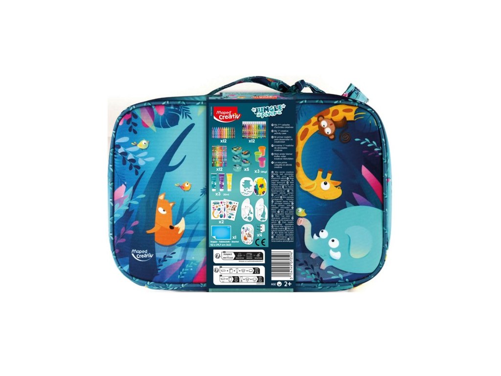 Kufřík Jungle Fever pro malé umělce. Obsahuje více než 50 barevných doplňků včetně fixů, pastelek, barev a samolepek. Ideální pro děti od 2 let k vytváření kreativních uměleckých děl. Zábava a vzdělávání v jednom!