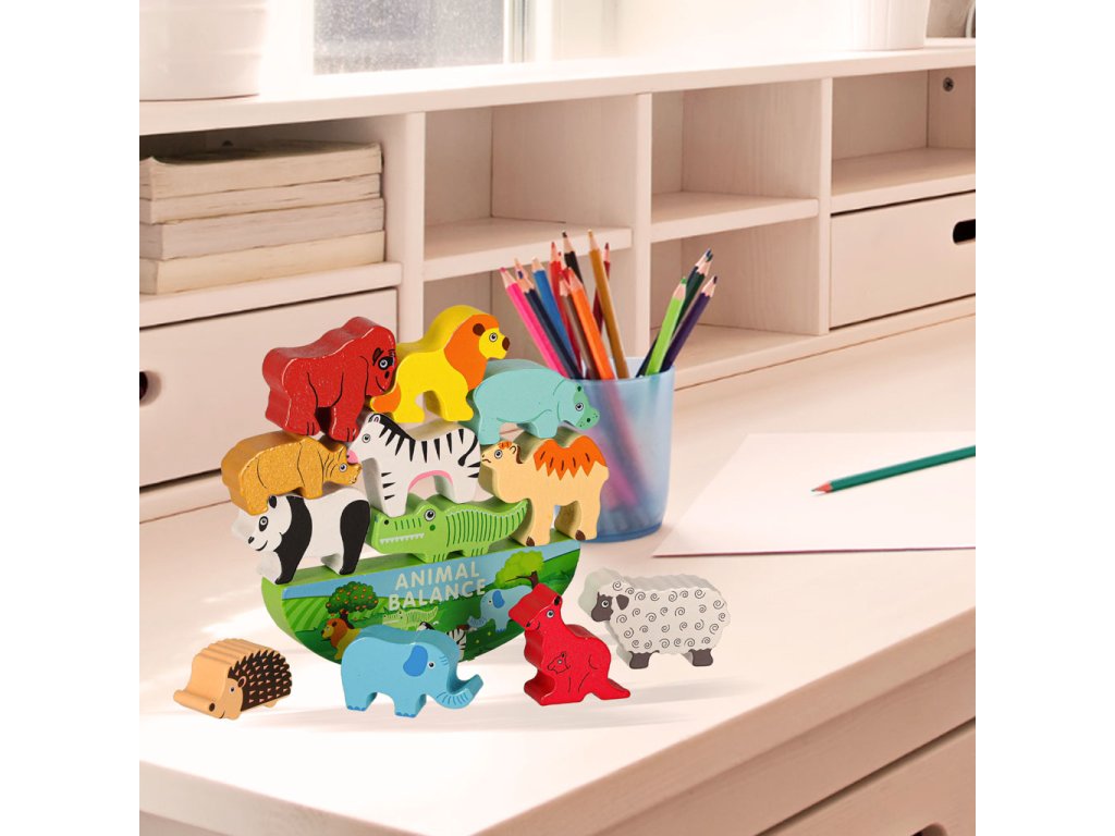 Ukládání zvířat na stojan poskytne fantastickou zábavu na dlouhé hodiny pro celou rodinu . Co kdybyste soutěžili, kdo rychleji naskládá všechna zvířata na základnu, nebo se střídali ve skládání zvířat, dokud se konstrukce nezhroutí? Možností je mnoho a jediným omezením je vaše představivost.