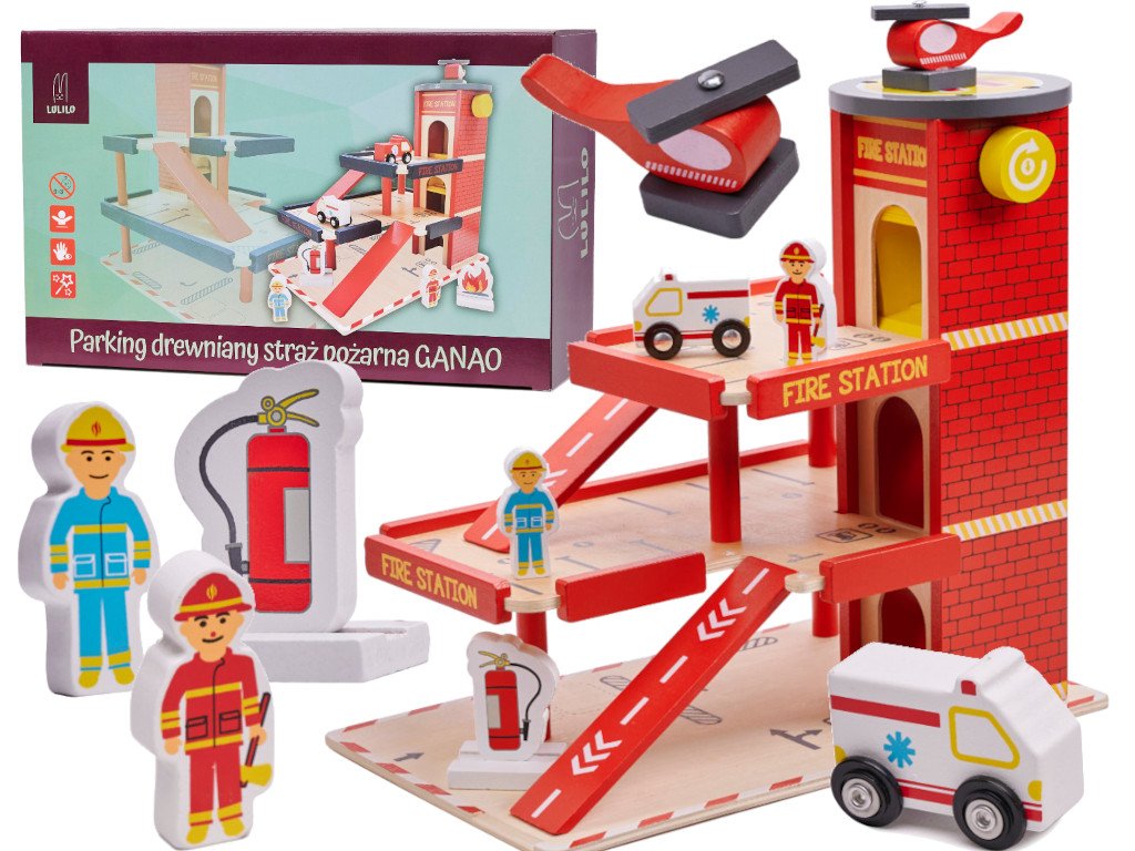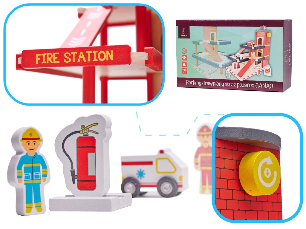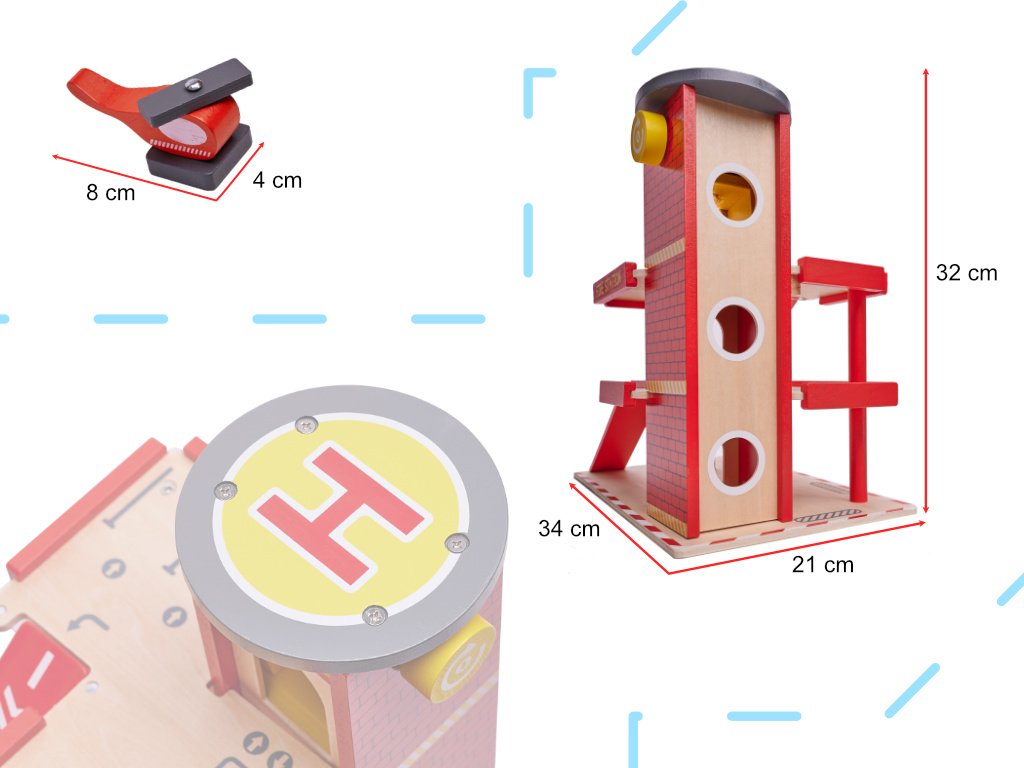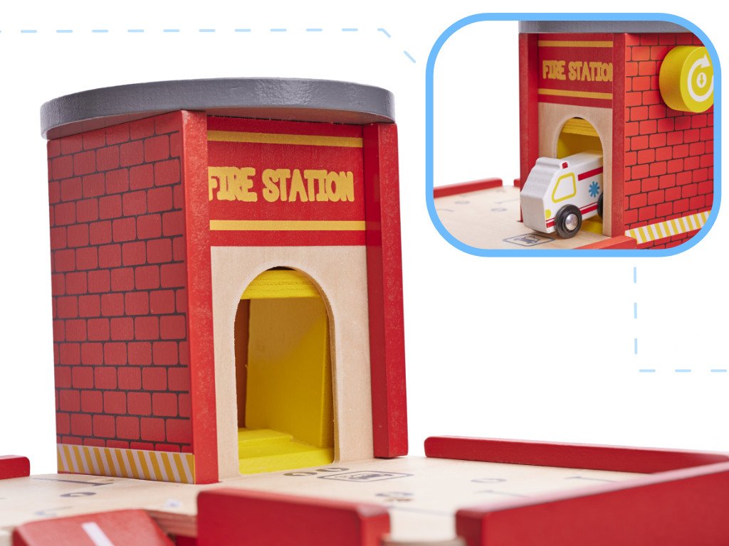 Tato jedinečná garáž má čtyři úrovně! První tři slouží k parkování hasičských vozů. Je zde místo pro vozidla, která jsou součástí sady, ale své místo zde najdou i další oblíbená auta vašeho dítěte.
