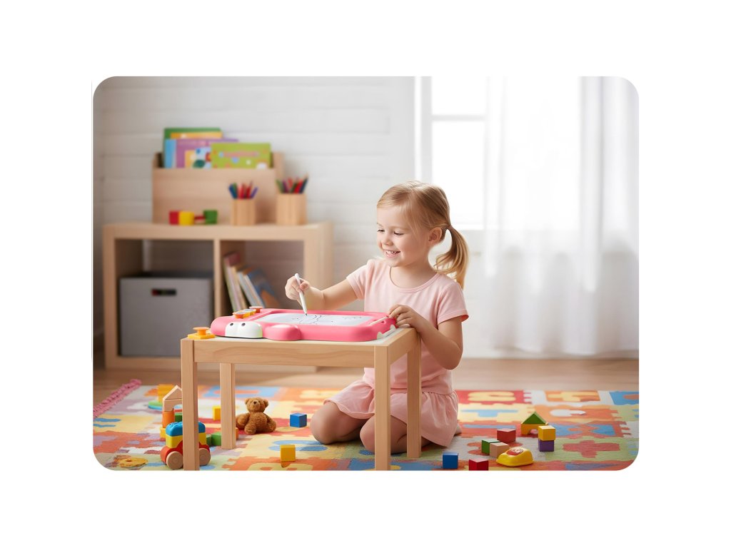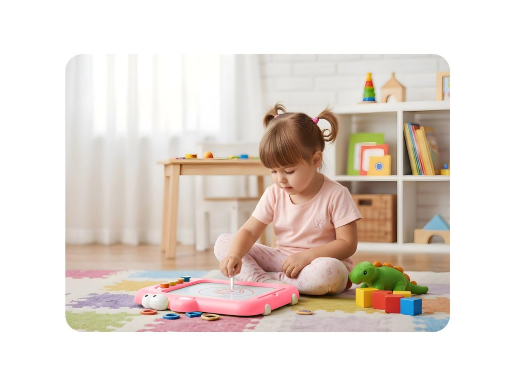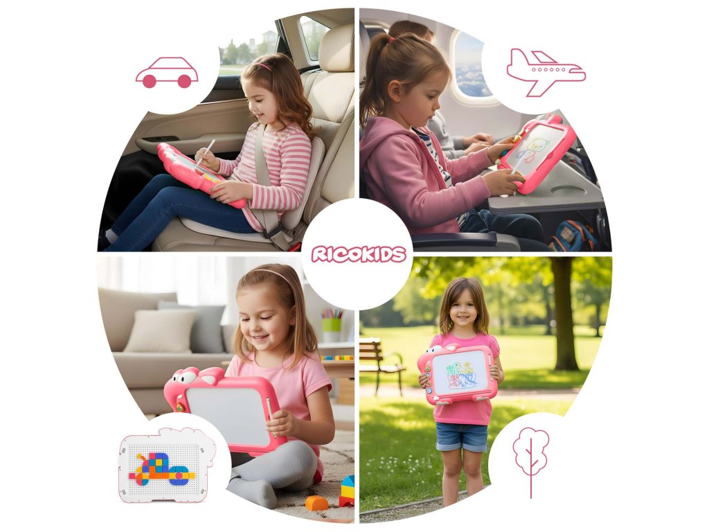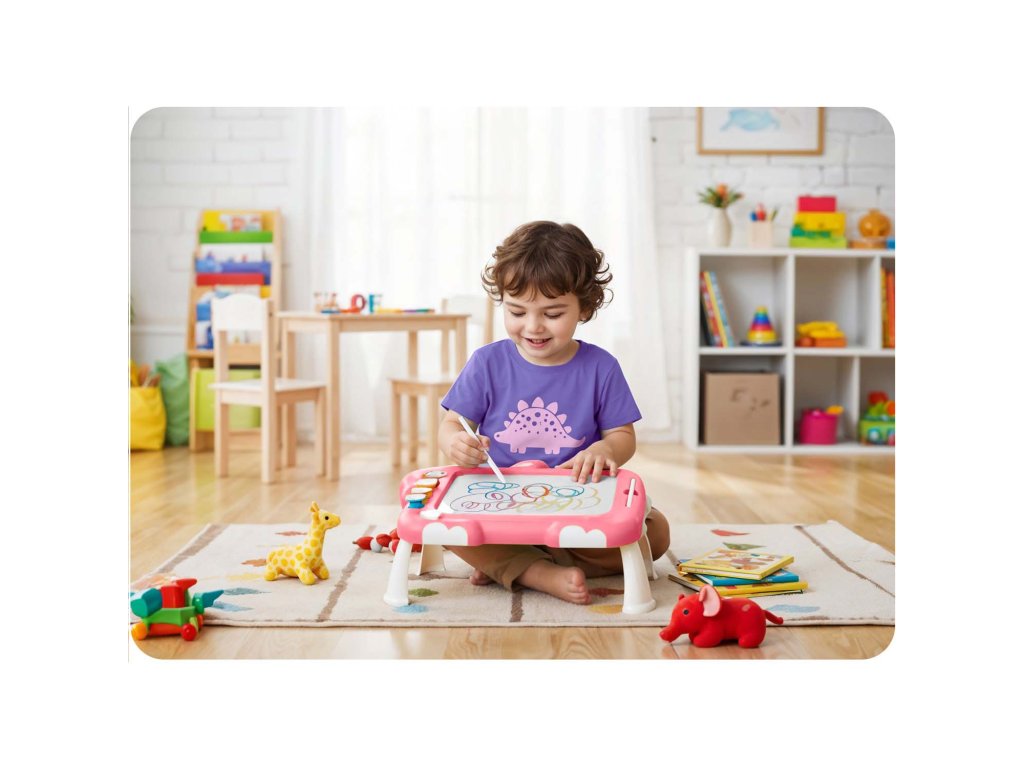 Ľahko zmazateľné, absorbujúce doplnky a pohodlná forma tabule, ktorú si dieťa môže vziať so sebou.