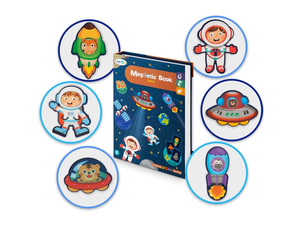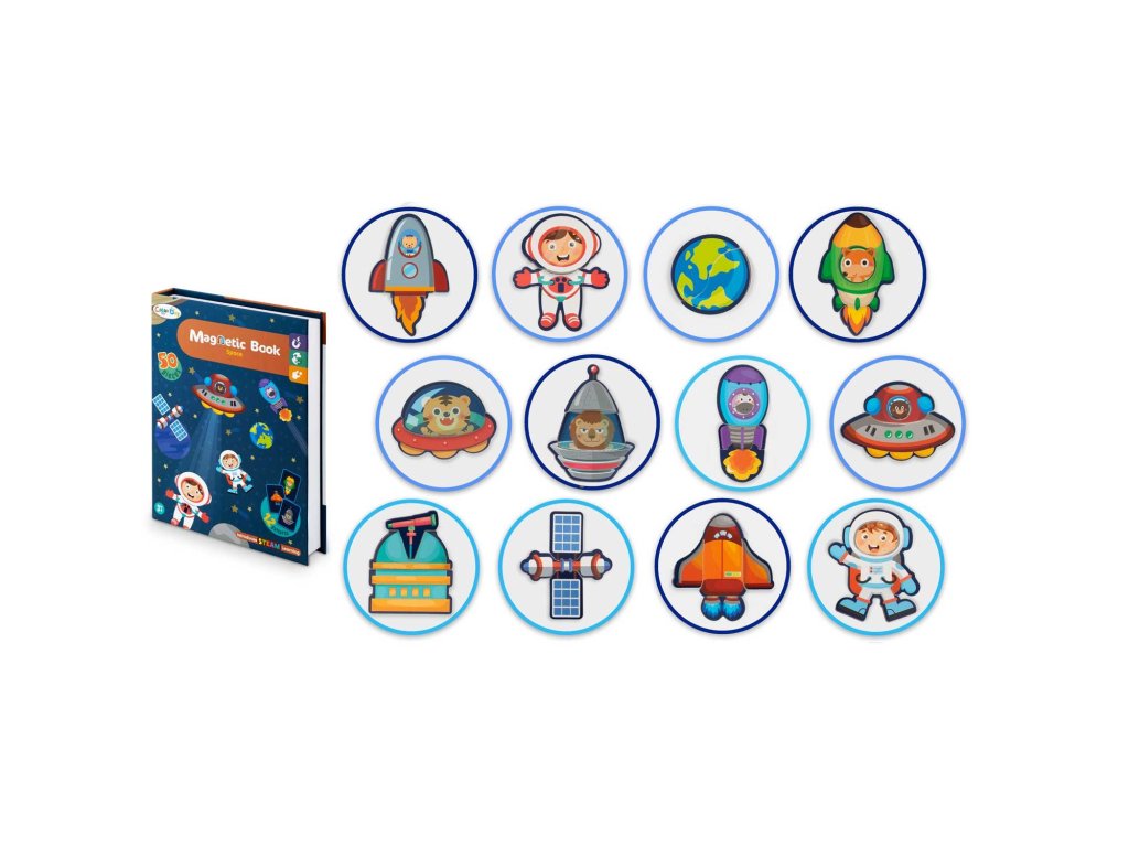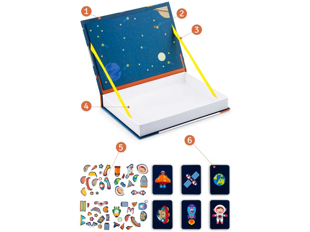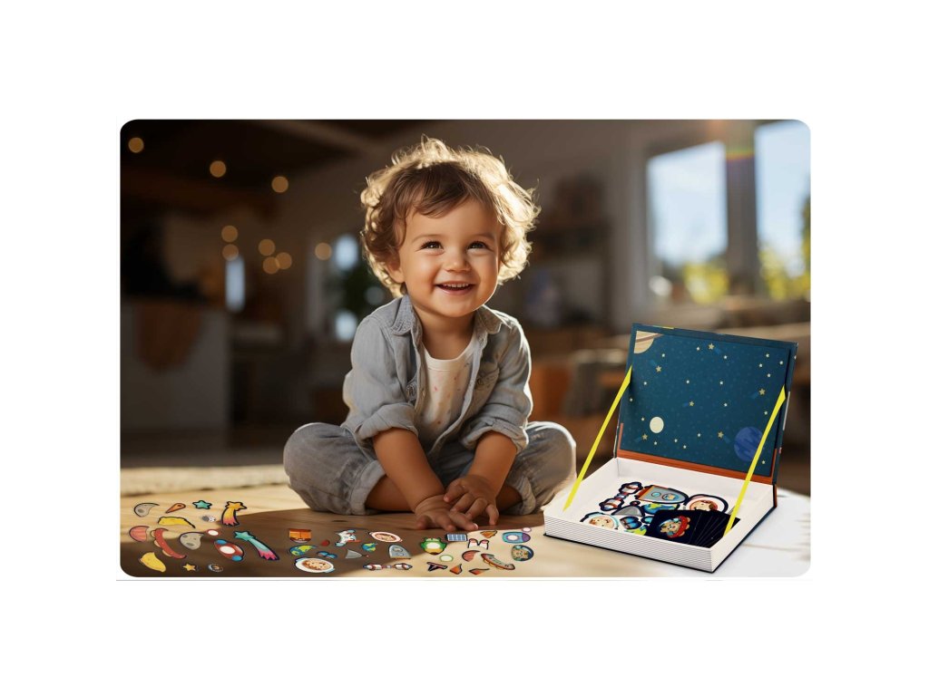 Podpořte zvědavost začínajících vesmírných badatelů se sadou, která přenese dětskou fantazii do vzdáleného vesmíru. Přiřazením barevných magnetů k pozadí, děti si rozvíjejí koordinaci očí a rukou, rozpoznávání tvarů a barev a kreativitu - a zároveň se skvěle bavit!