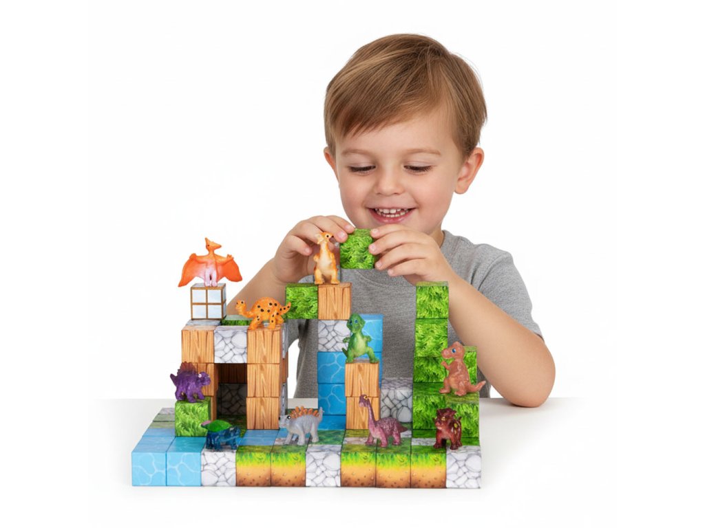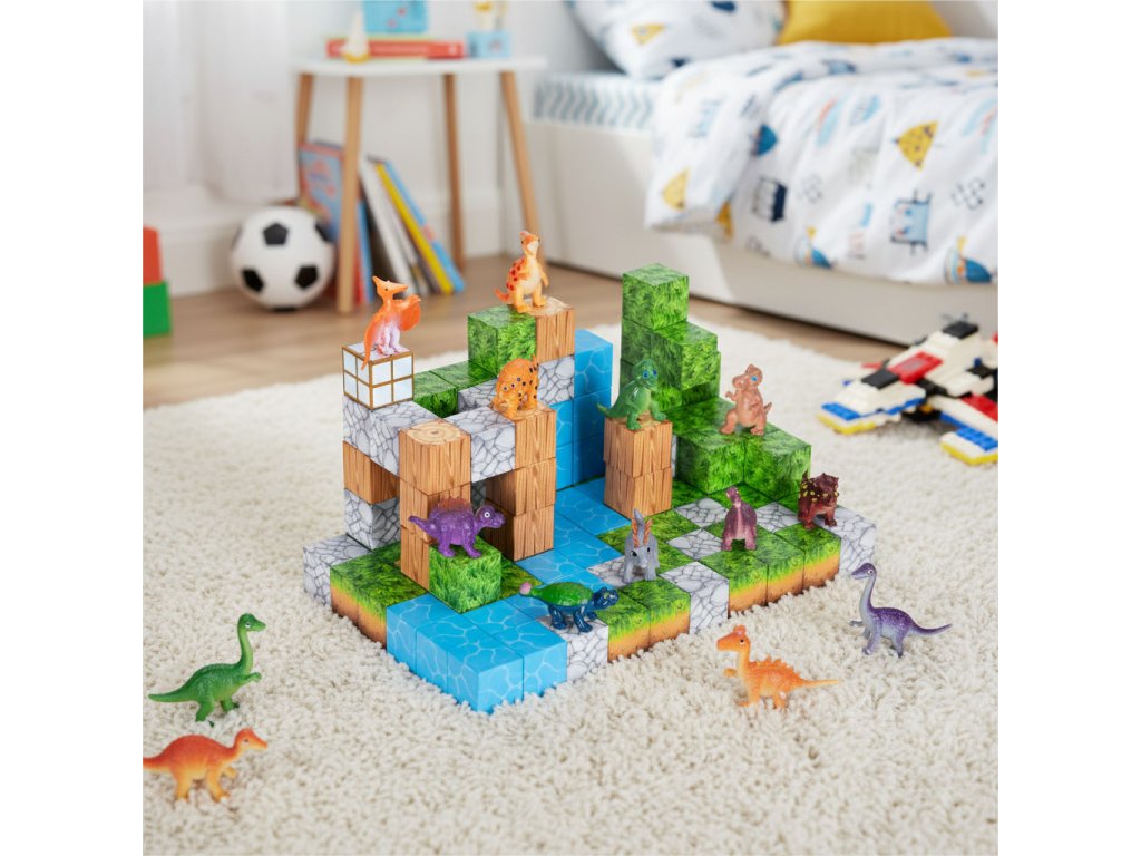 Kostky jsou propojeny vestavěné magnety, které způsobují, že se prvky rychle a automaticky přitahují. Je to jednoduché, intuitivní forma hry, což dětem přináší uspokojení a umožňuje jim soustředit se na tvůrčí práci.