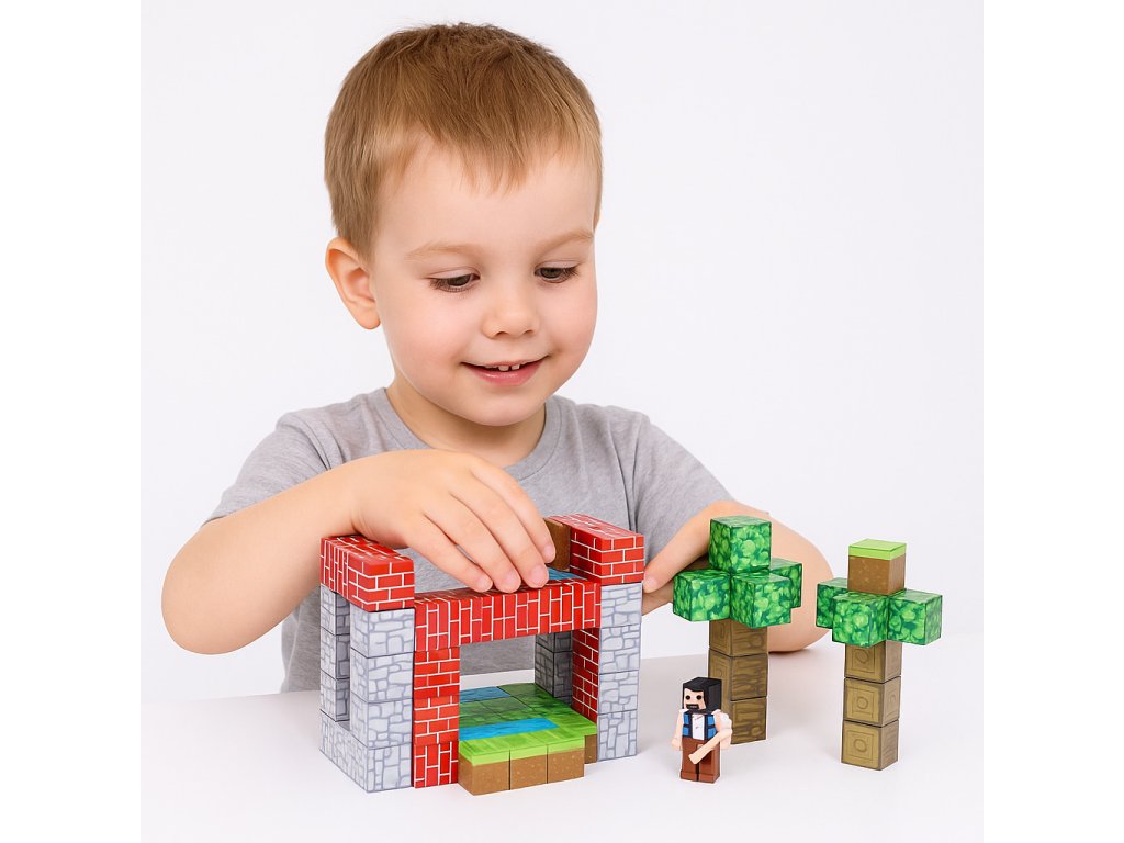 Kocky sú spojené zabudované magnety, ktoré spôsobujú, že sa prvky rýchlo a automaticky priťahujú. Je to jednoduché, intuitívna forma hry, čo deťom prináša uspokojenie a umožňuje im sústrediť sa na kreatívnu tvorbu.