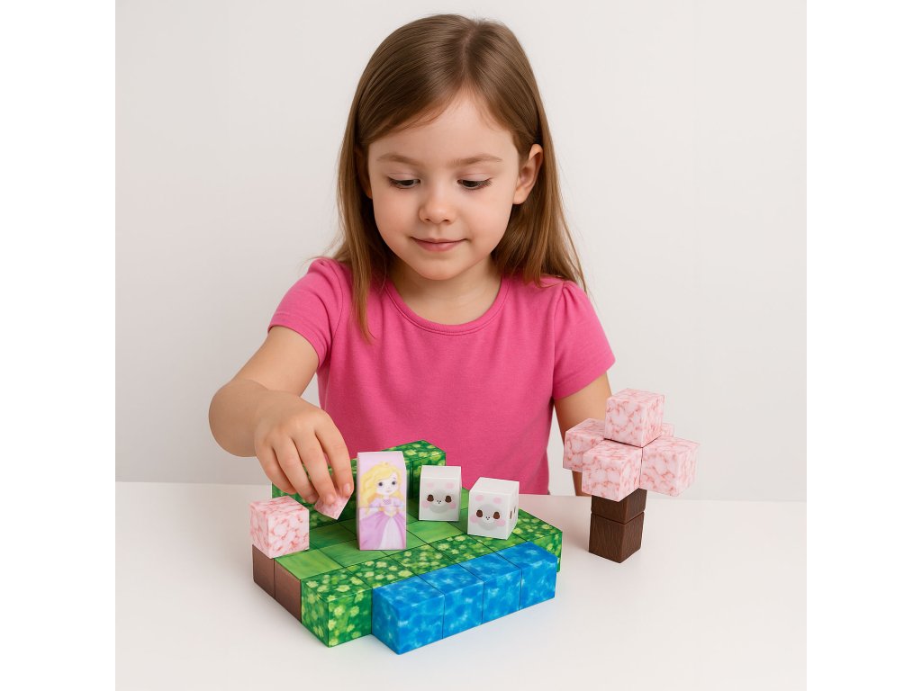 Súprava obsahuje 100 magnetických kociek z toho tlačené postavičky - princezné a zajačiky , čo poskytuje obrovský priestor na kreatívne hry a kombinácie.