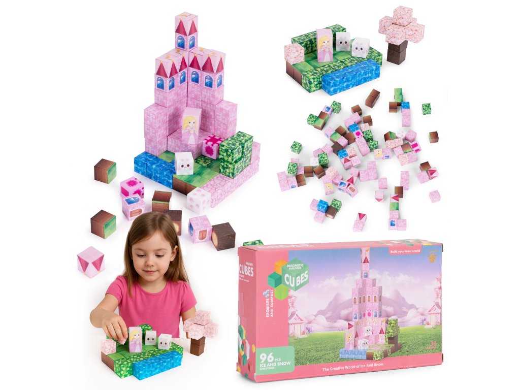 Magnetická stavebnice pro děti 96 dílků kostek růžový hrad