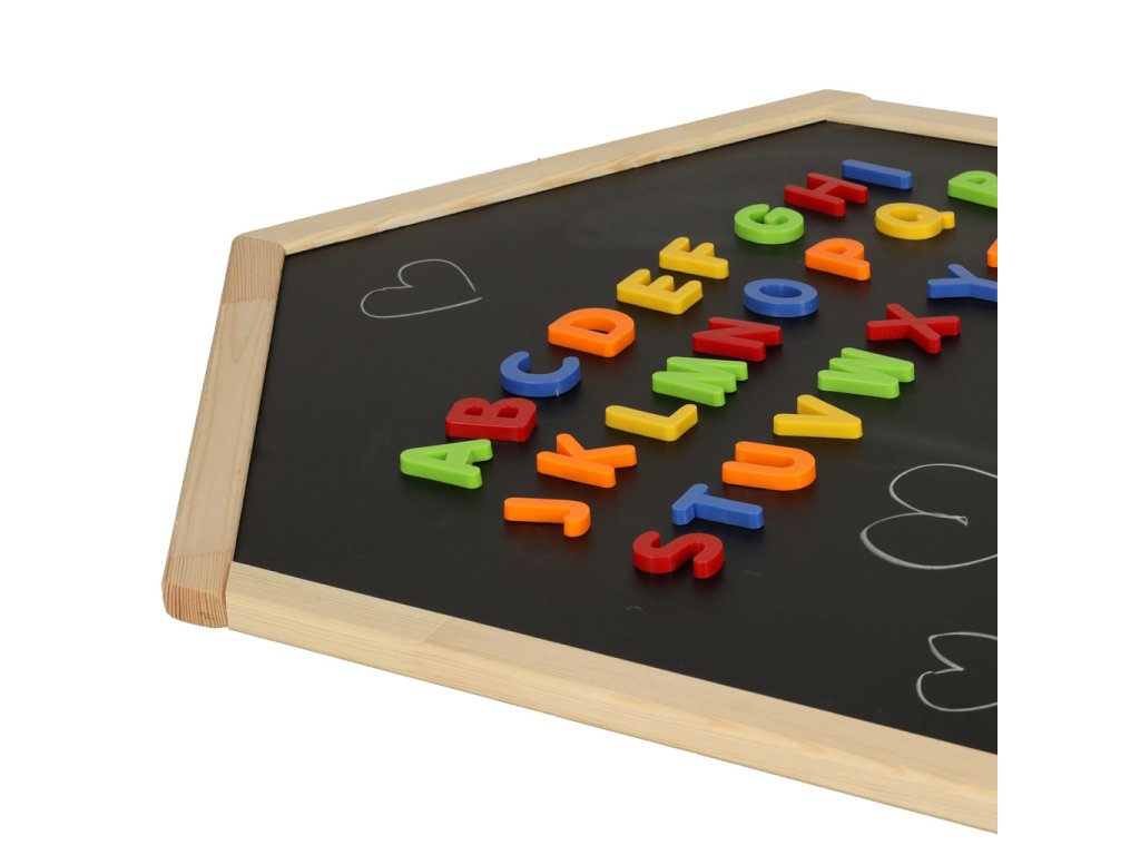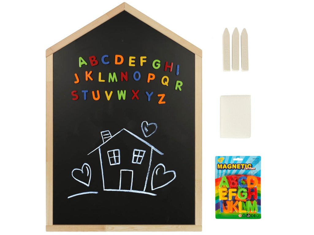 Pomocí desky, která je kombinací křídové a magnetické tabule , vaše dítě bude moci popustit uzdu své fantazii a vytvořit jedinečná umělecká díla pomocí kříd. Tabule však není ideální jen na hraní - lze ji použít také jako nástěnku na hraní pomůcka pro výuku psaní nebo sčítání . Koneckonců, cokoli bude zajímavější než psaní do nudného sešitu! Sada navíc obsahuje barevné magnety ve tvaru písmen to je ideální způsob, jak se naučit abecedu.