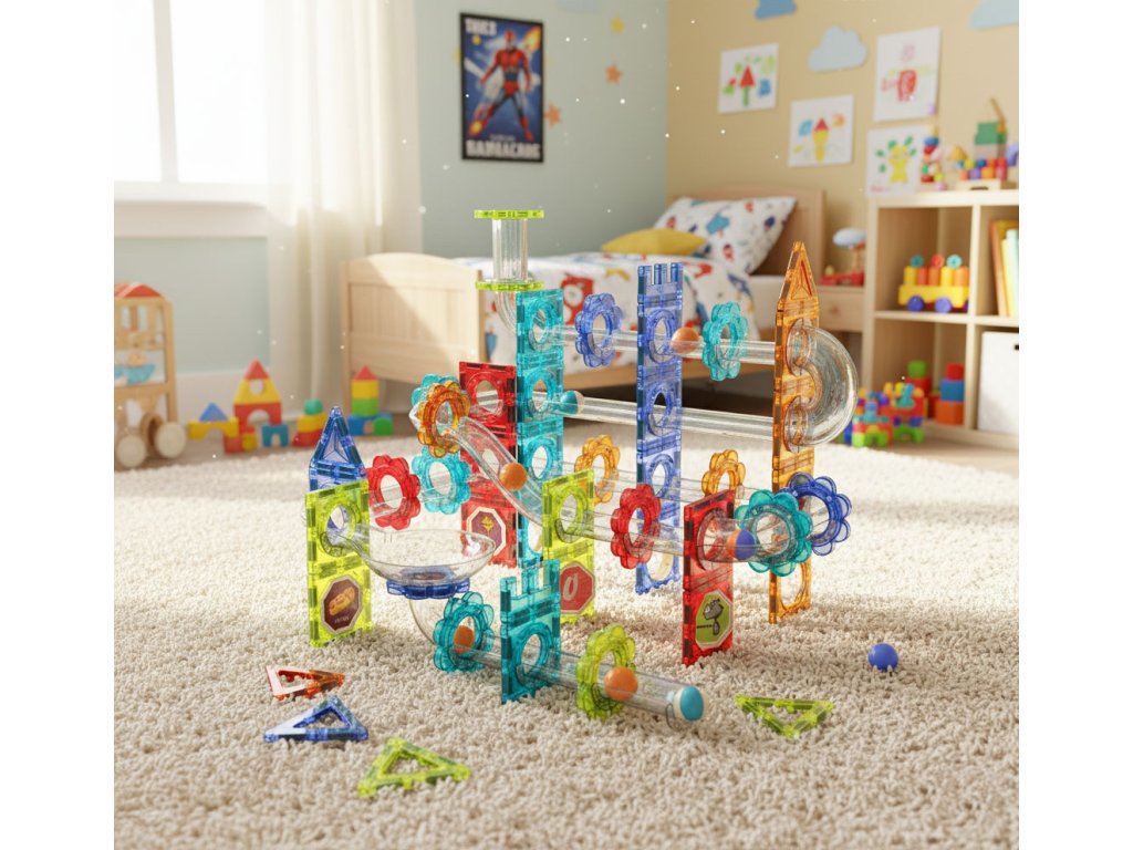 Tato sada magnetických bloků je ideální vývojovou hračkou; kreativita, logické myšlení a prostorová představivost . Děti si mohou vytvořit vlastní dynamické trasy s tunely a sjezdy a zároveň se naučíte principy fyziky a plánování. Je to zábava a zároveň stimuluje smysly podporuje manuální vývoj a nezávislé experimentování. Stavebnice je vhodná pro konstrukci jednoduchých forem i složitějších 3D projektů a poskytuje mnoho hodin zábavy inteligentní a poutavá hra .