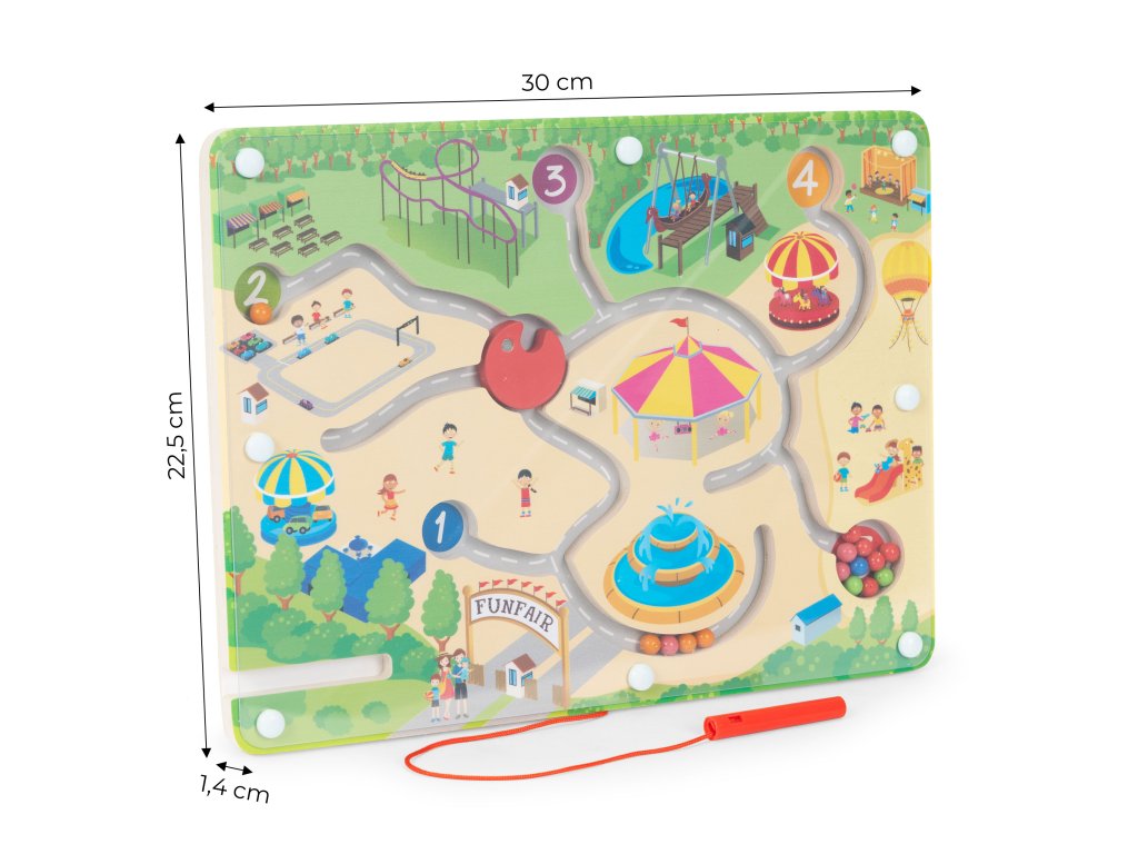 V labyrintu se nachází tolik jako 15 barevných kovových kuliček které by měly být předloženy na správná místa pomocí plastové magnetické tyčinky. Každá kulička má určený cíl, například číslo s přiřazenou barvou. Uprostřed bludiště musíme pohyblivý prvek, který můžeme volně se otáčet aby míč dopadl na správné místo.