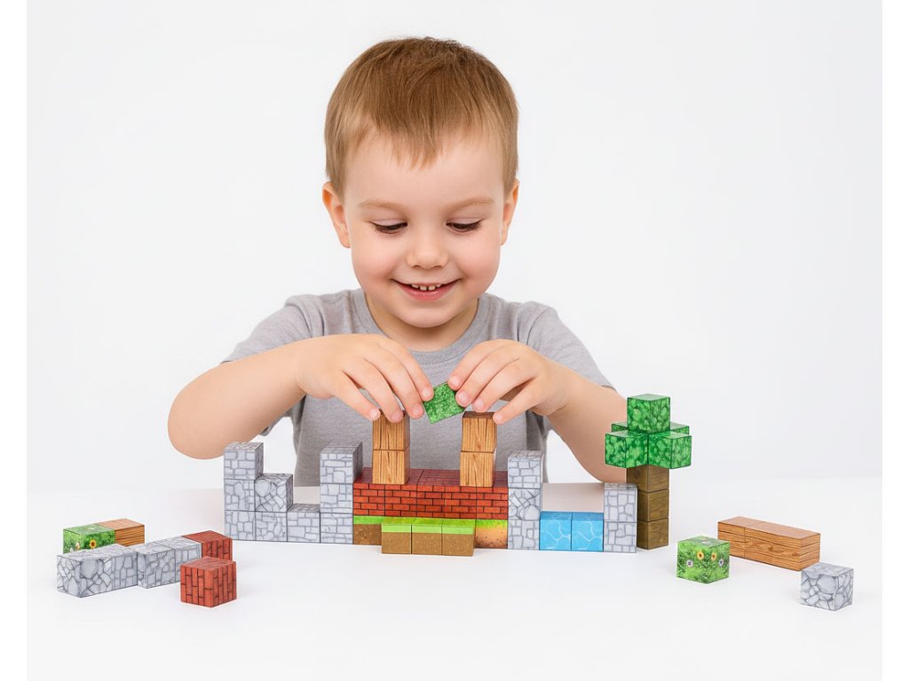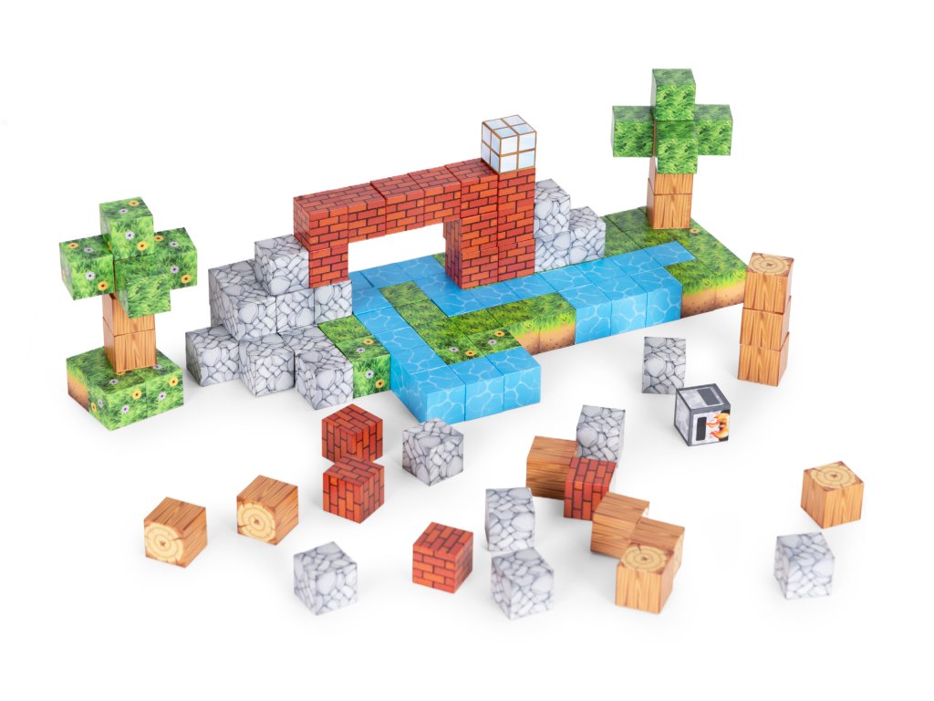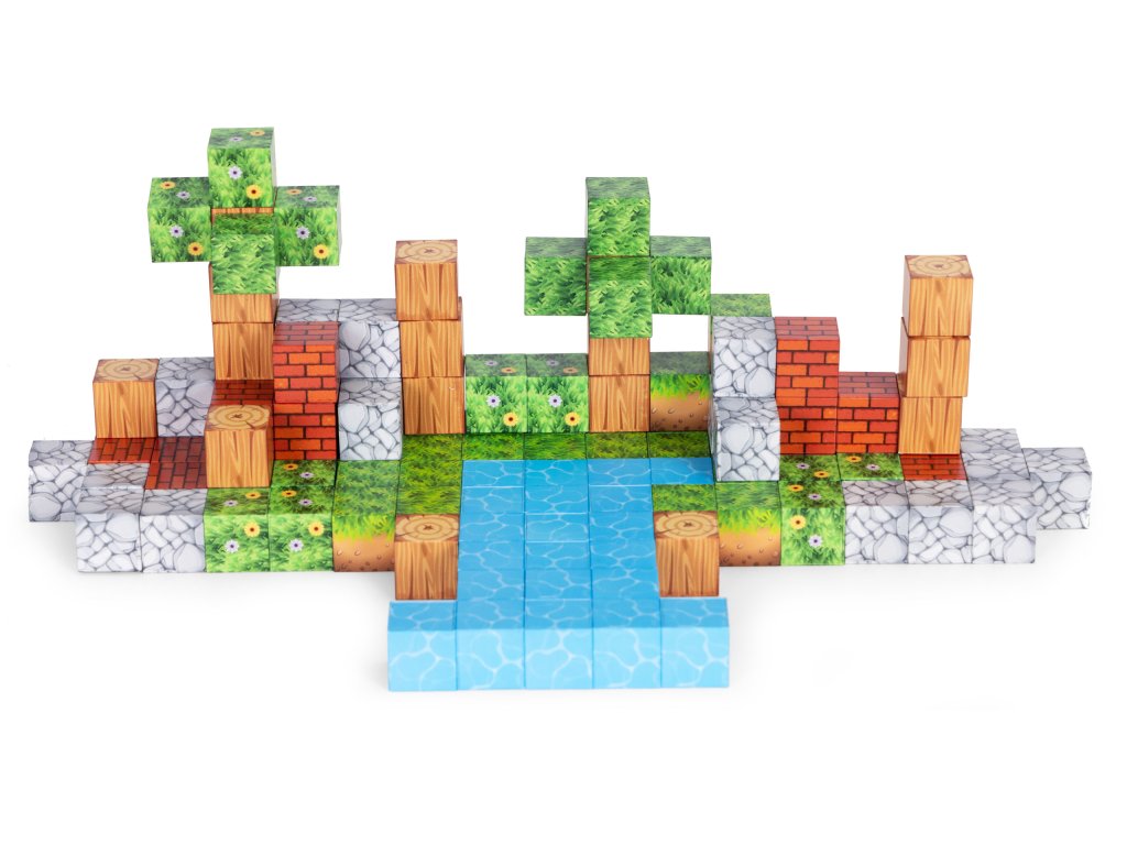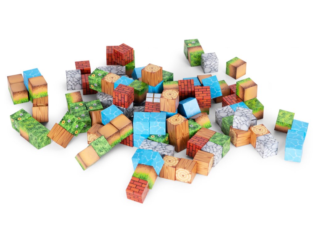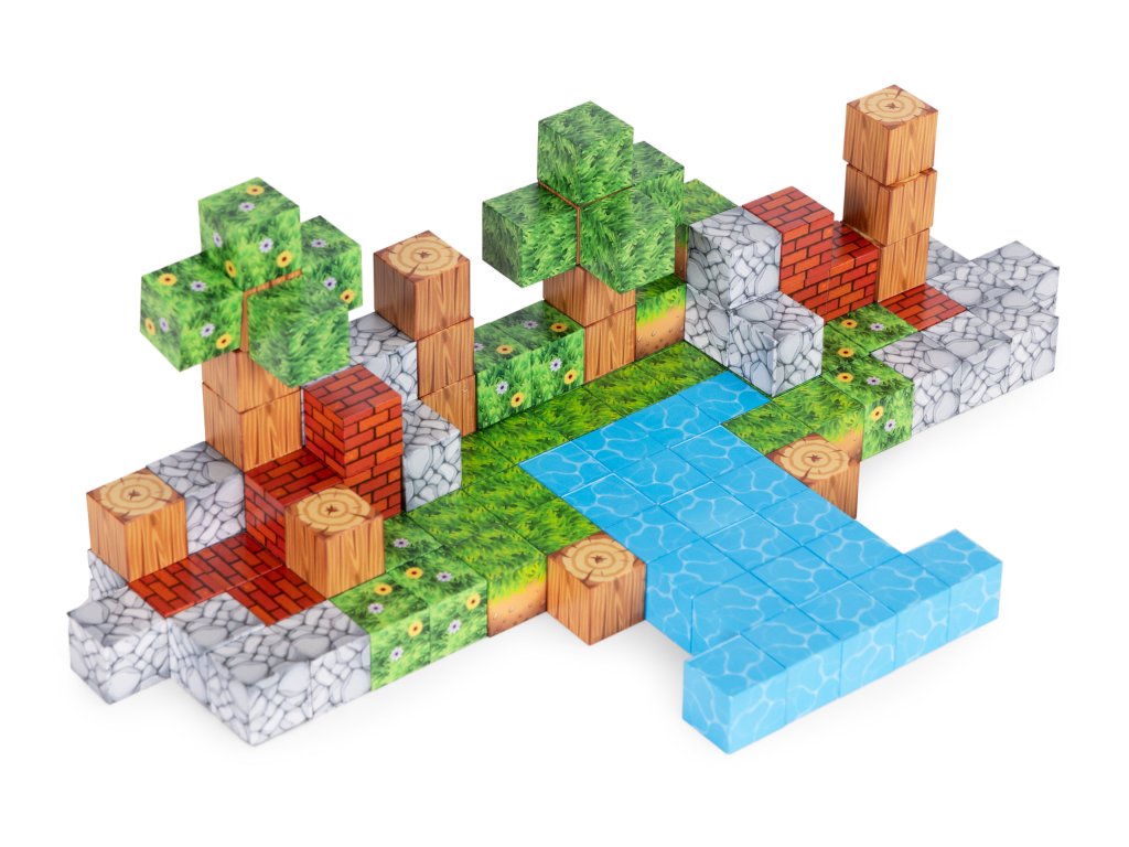 Kostky jsou propojeny vestavěné magnety, které způsobují, že se prvky rychle a automaticky přitahují. Je to jednoduché, intuitivní forma hry, což dětem přináší uspokojení a umožňuje jim soustředit se na tvůrčí práci.