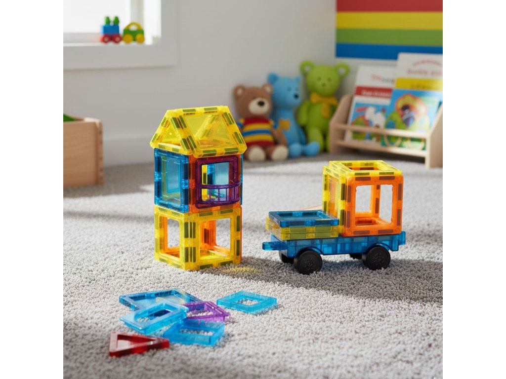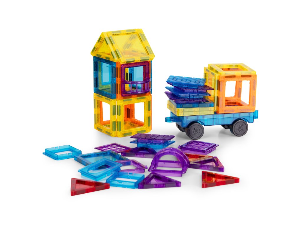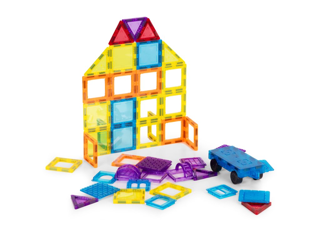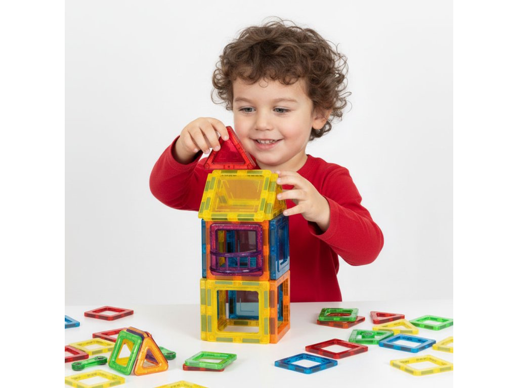 Tato sada magnetických bloků je ideální vývojovou hračkou; kreativita, logické myšlení a prostorová představivost . Děti si mohou vytvořit vlastní různé stavby - domy, věže, vozidla a geometrické tvary . Je to hra, která zároveň stimuluje smysly podporuje manuální vývoj a nezávislé experimentování. Stavebnice je vhodná pro konstrukci jednoduchých forem i složitějších 3D projektů a poskytuje mnoho hodin zábavy inteligentní a poutavá hra .