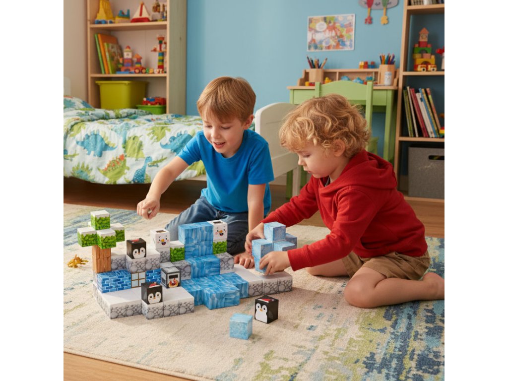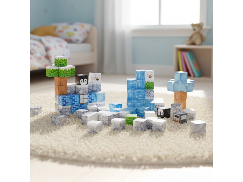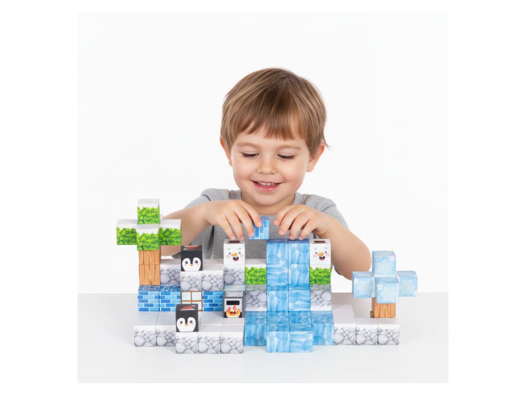 Kostky jsou propojeny vestavěné magnety, které způsobují, že se prvky rychle a automaticky přitahují. Je to jednoduché, intuitivní forma hry, což dětem přináší uspokojení a umožňuje jim soustředit se na tvůrčí práci.