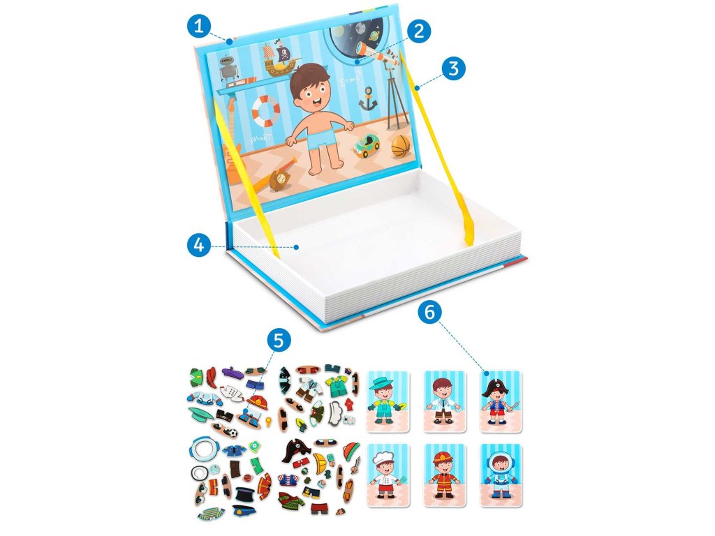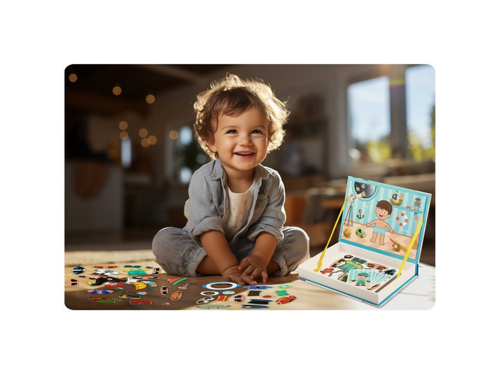 Kombinování magnetických oděvů s pozadím,děti si zdokonalují své motorické dovednosti, poznávají různé styly a rozvíjejí svou kreativitu - a zároveň se baví.